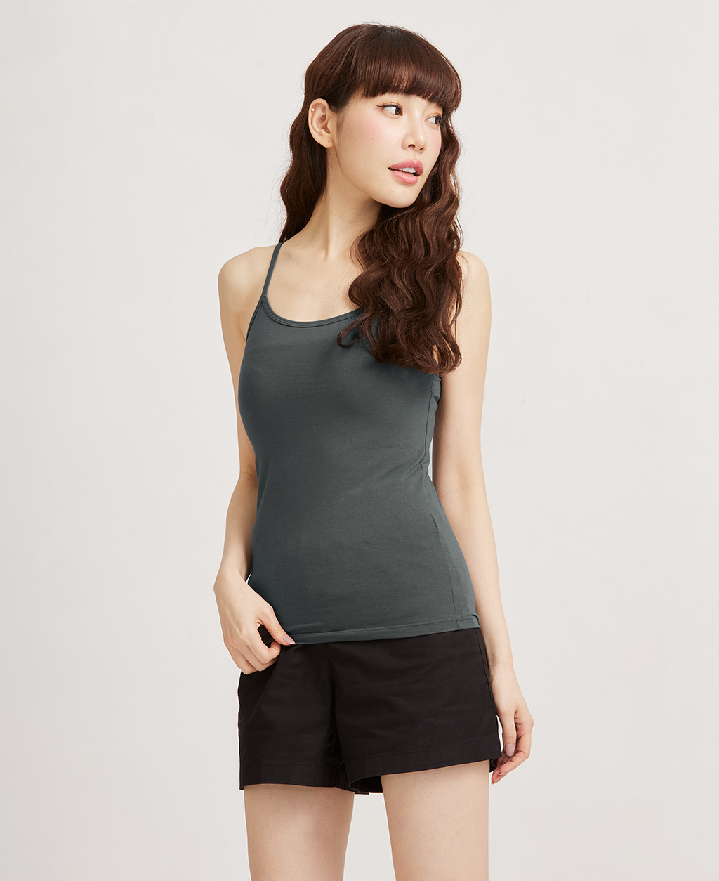 圓領素色棉彈背心