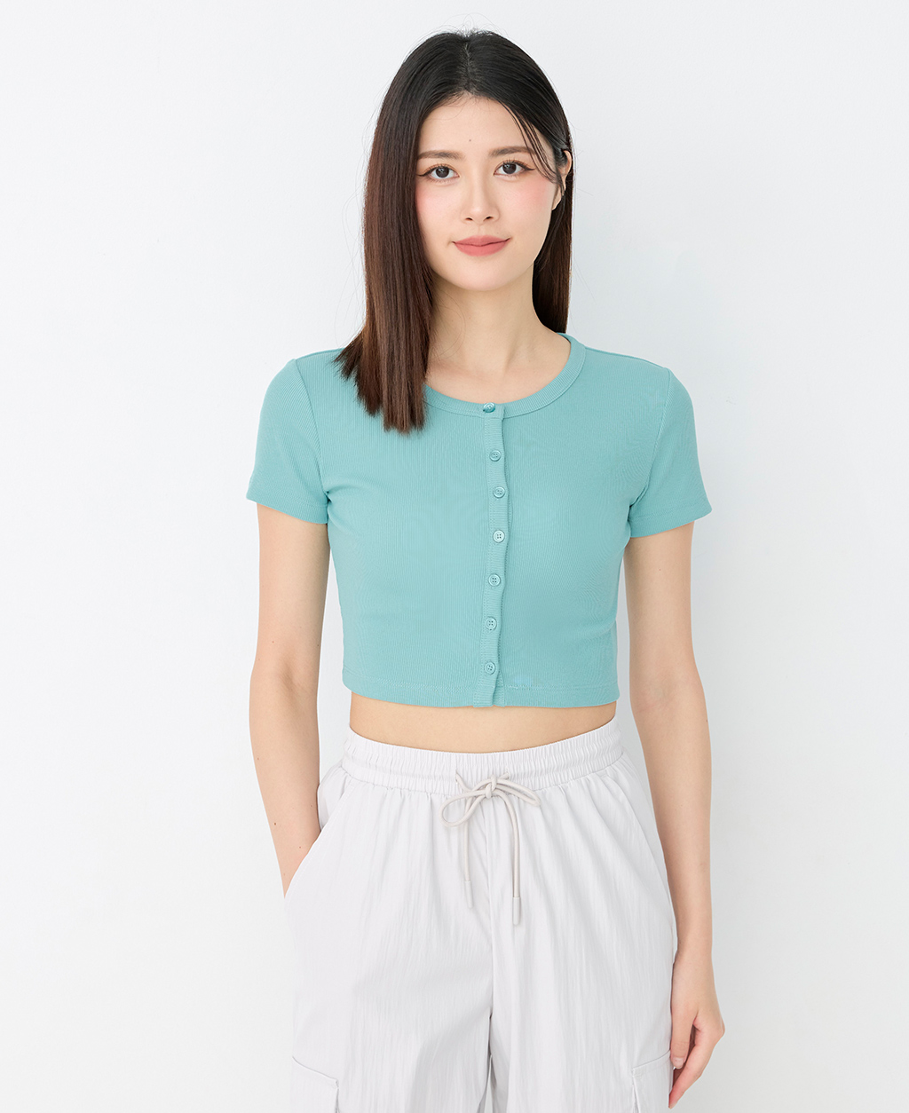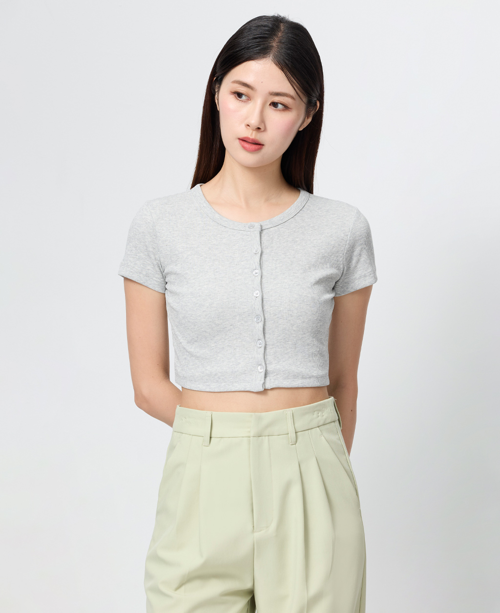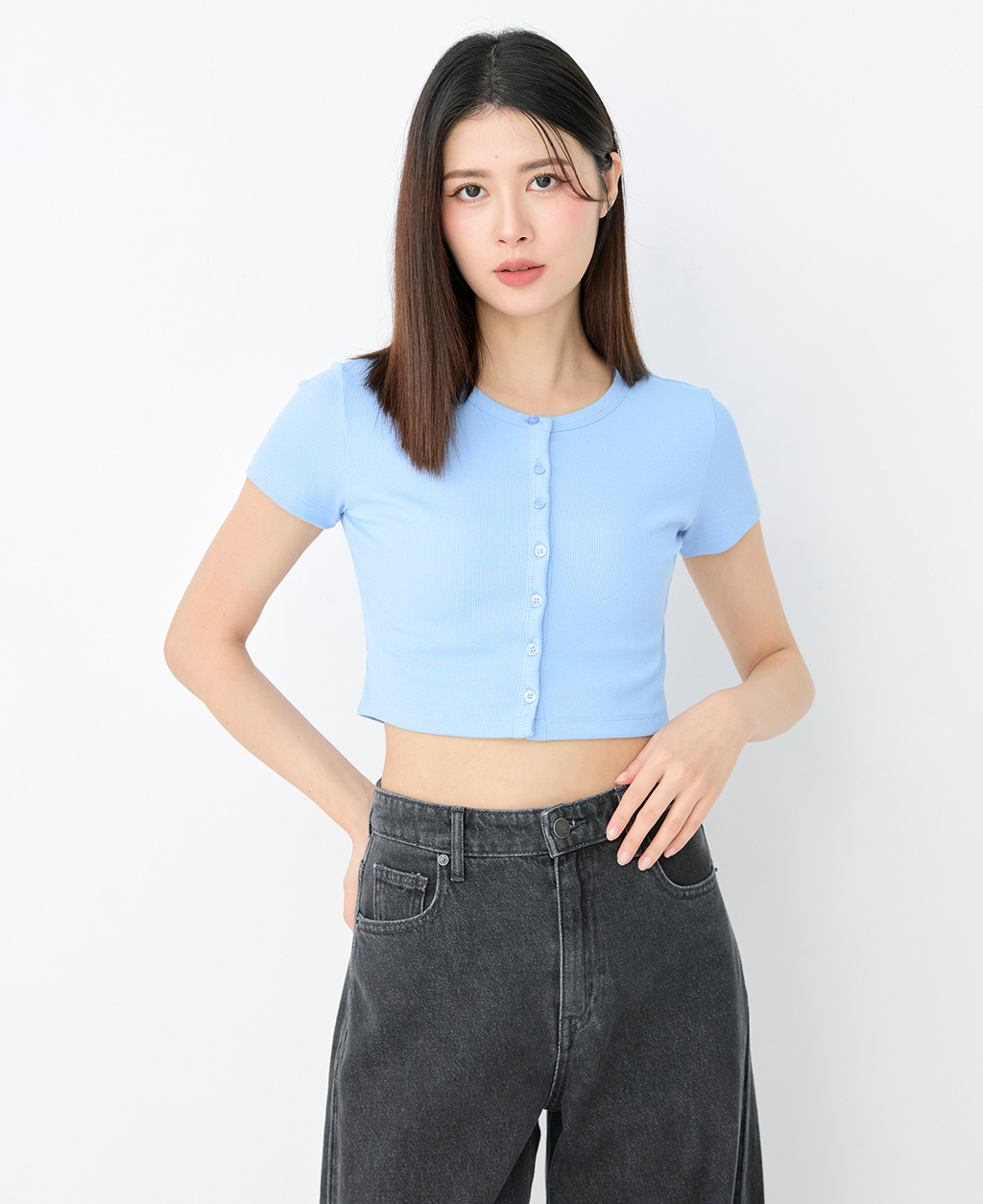 素色排釦開襟短版外套