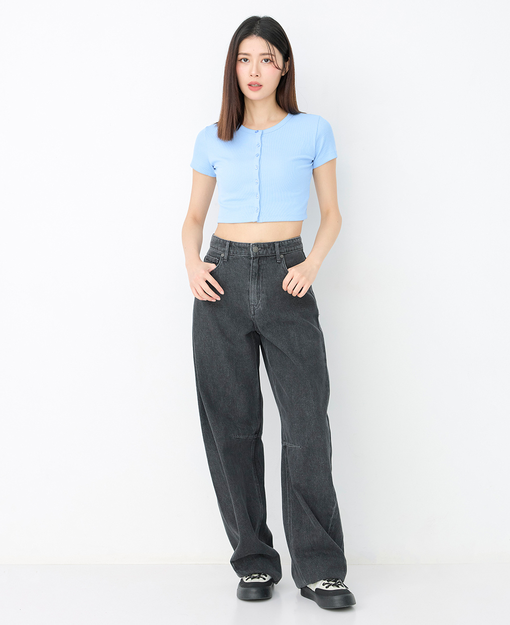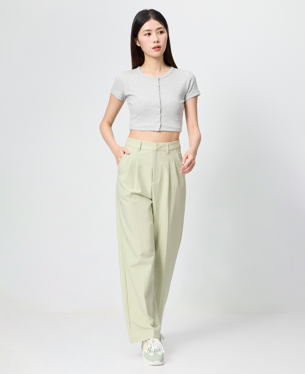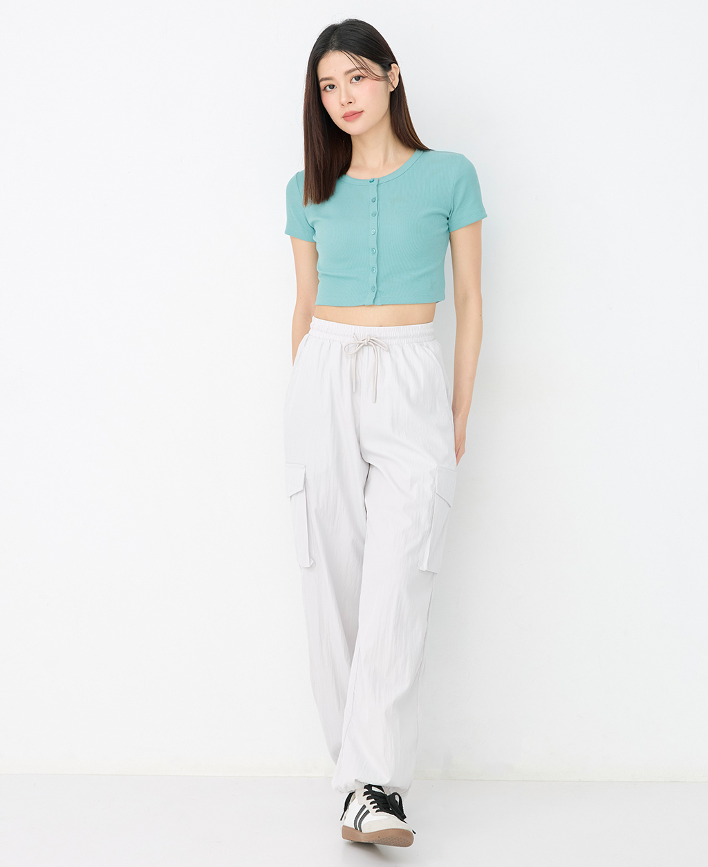 素色排釦開襟短版外套