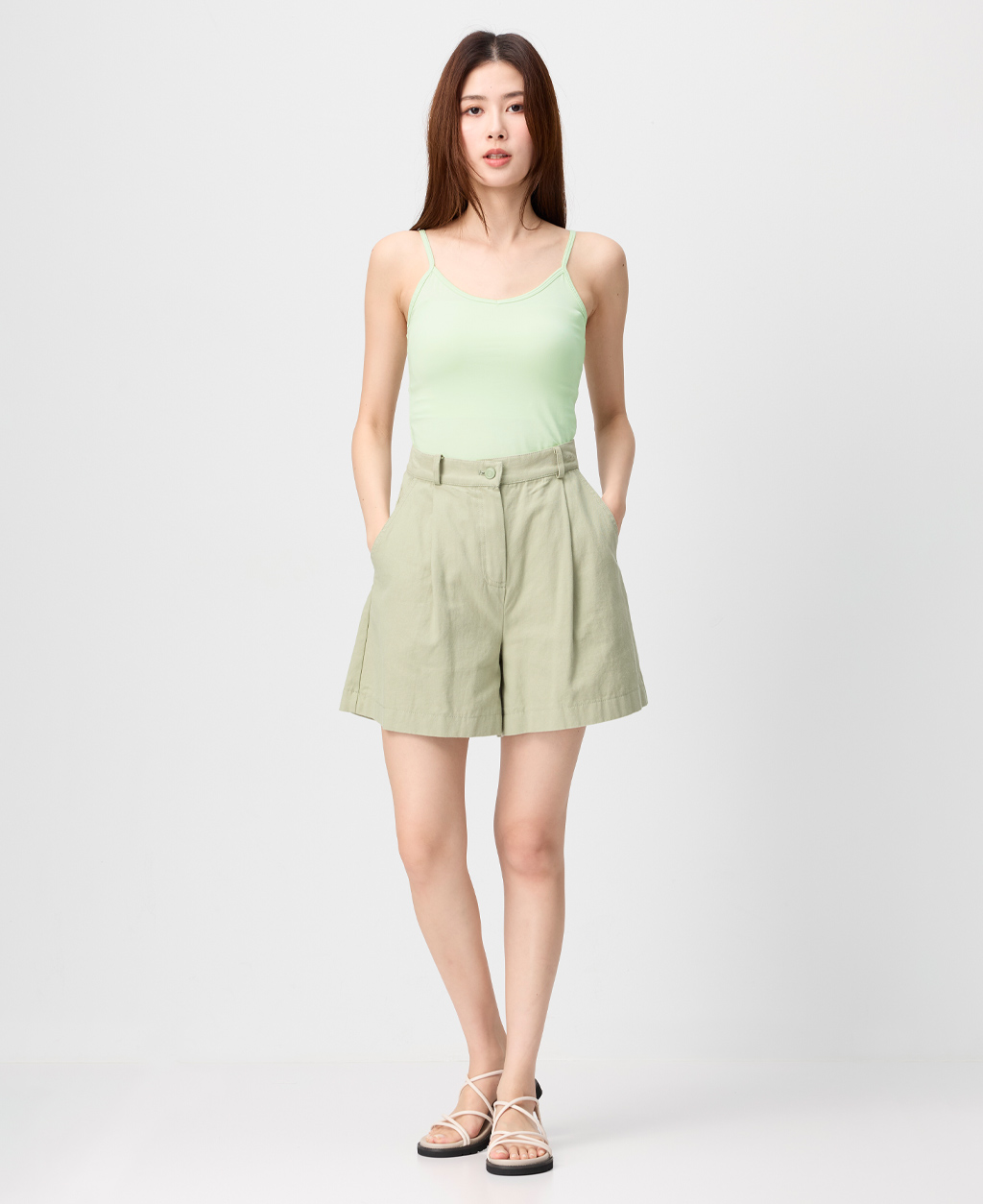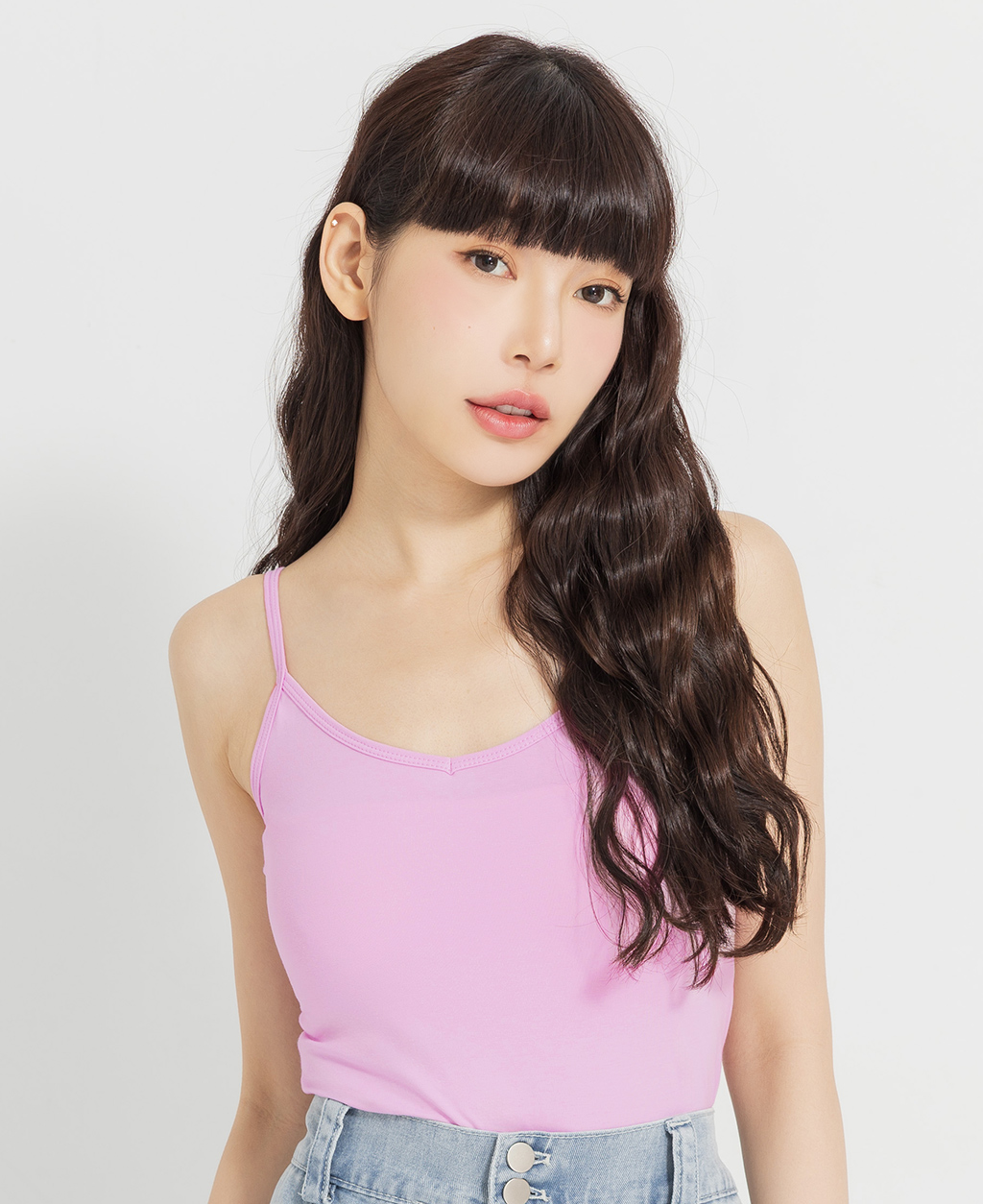 V領素色細肩背心
