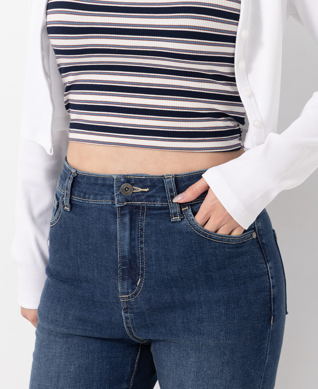 2.避免坐靠在淺色特別是潮濕的物體上,會有掉色可能。並小心與淺色衣物搭配,汗漬有可能導致未經洗水的牛仔商品褪色。