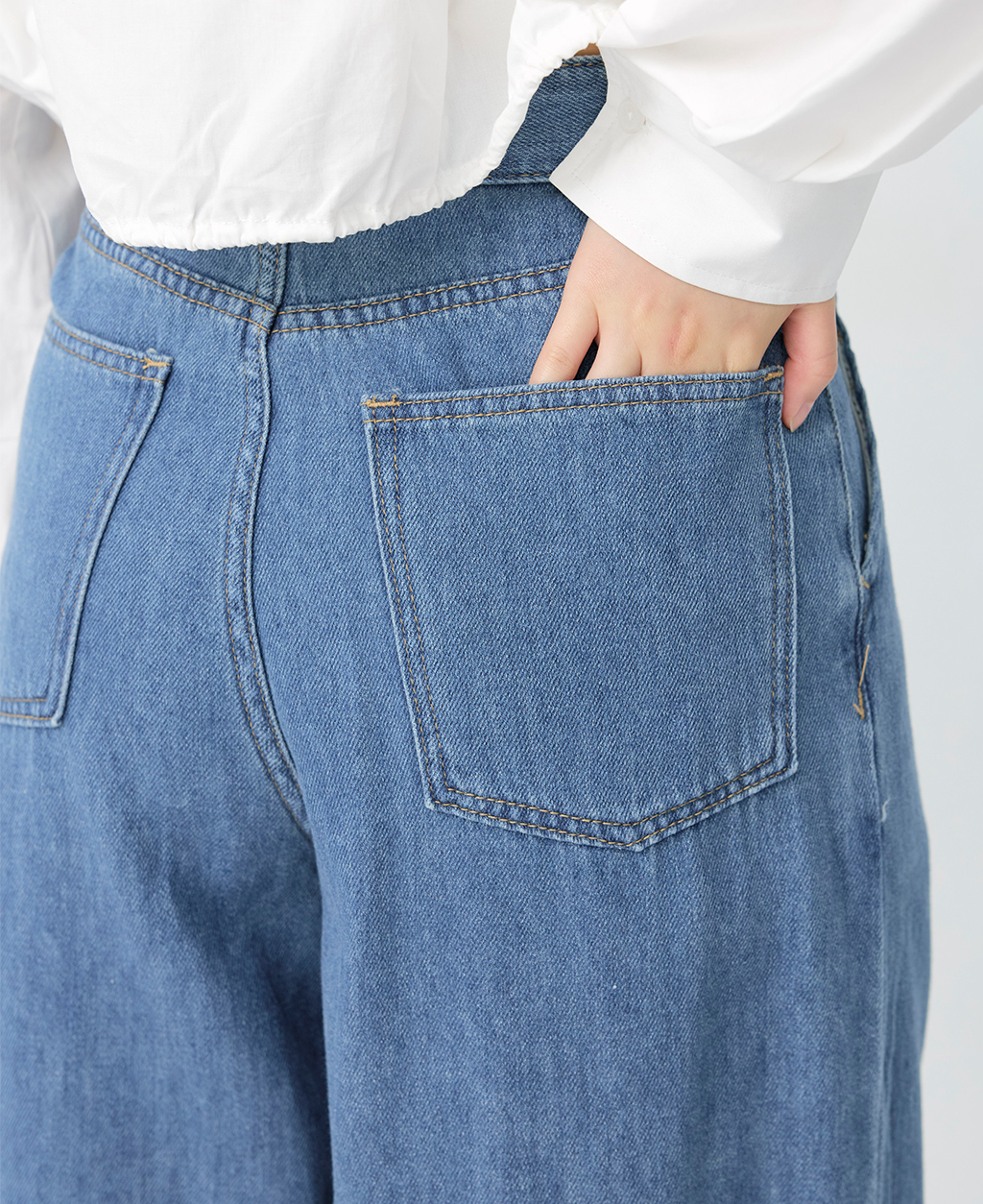 2.避免坐靠在淺色特別是潮濕的物體上,會有掉色可能。並小心與淺色衣物搭配,汗漬有可能導致未經洗水的牛仔商品褪色。