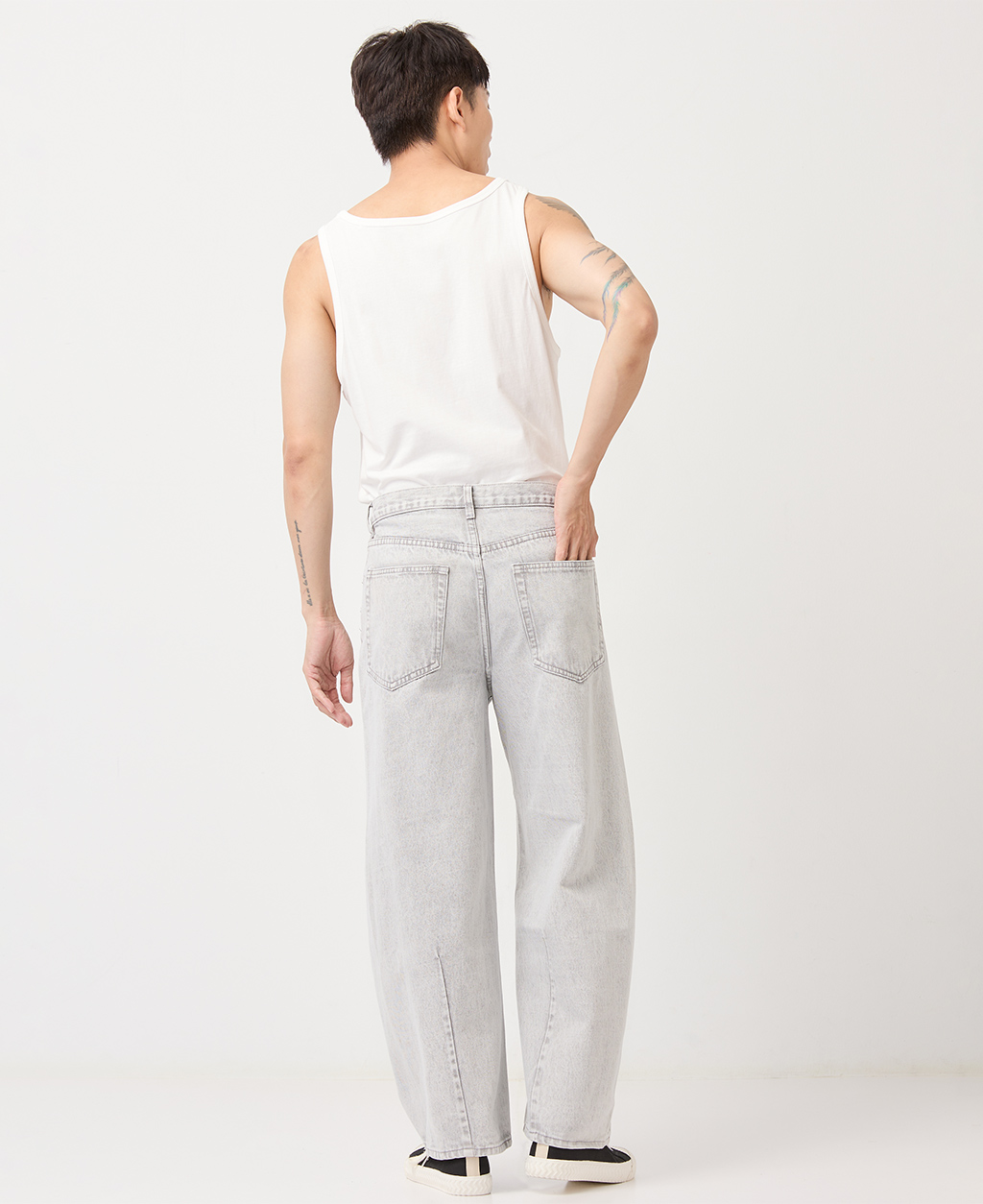 2.避免坐靠在淺色特別是潮濕的物體上,會有掉色可能。並小心與淺色衣物搭配,汗漬有可能導致未經洗水的牛仔商品褪色。