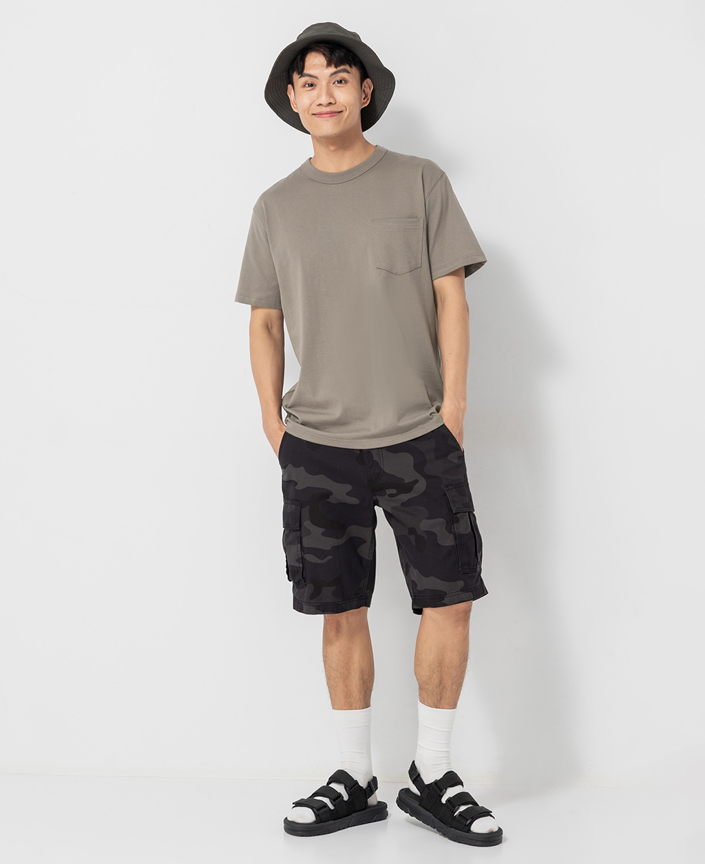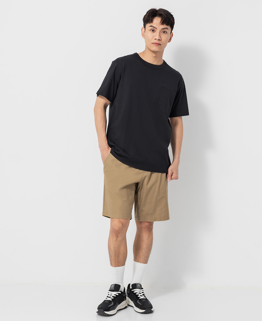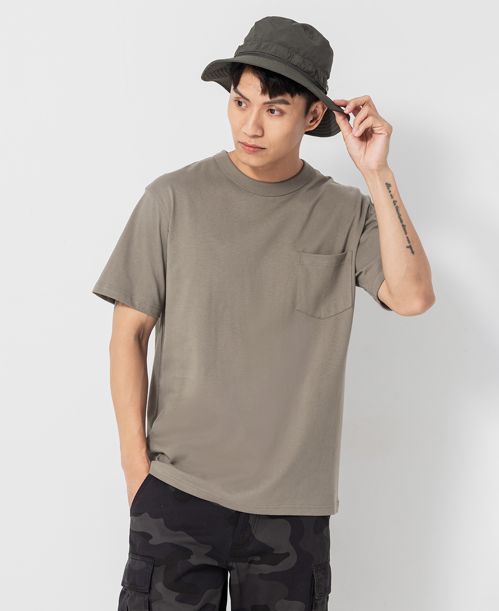 圓領落肩口袋神T