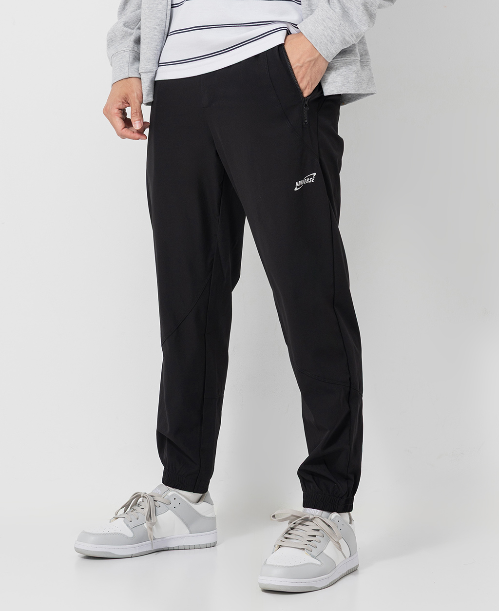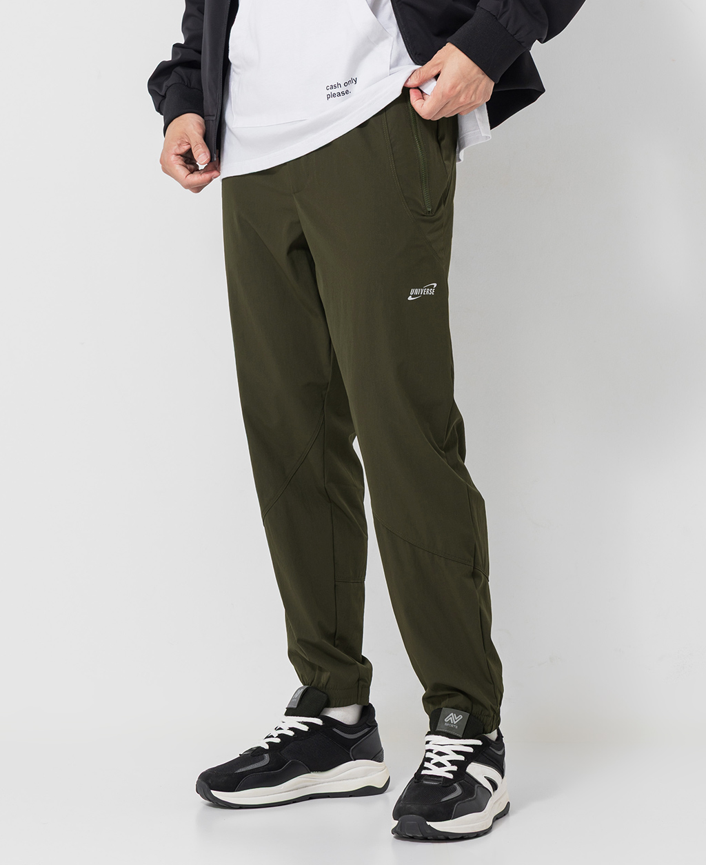 Regular Fit拉鍊路跑縮口褲
