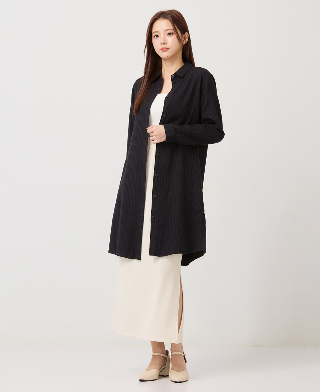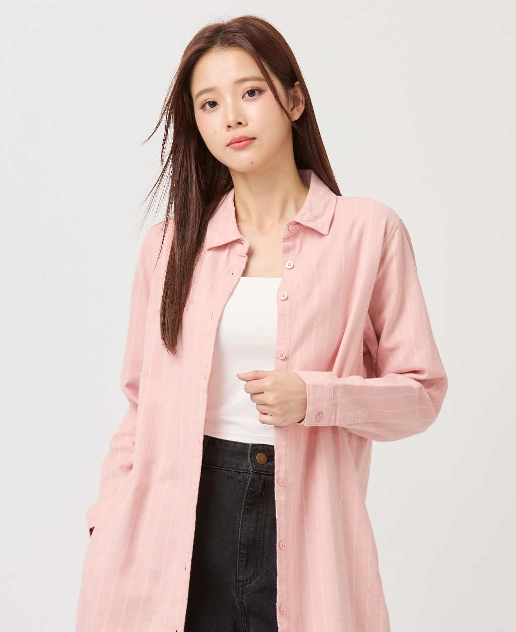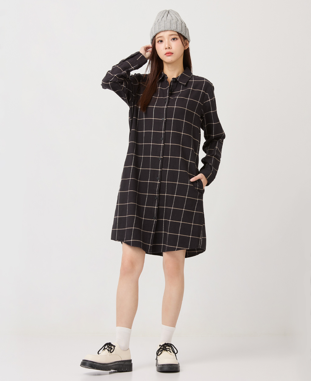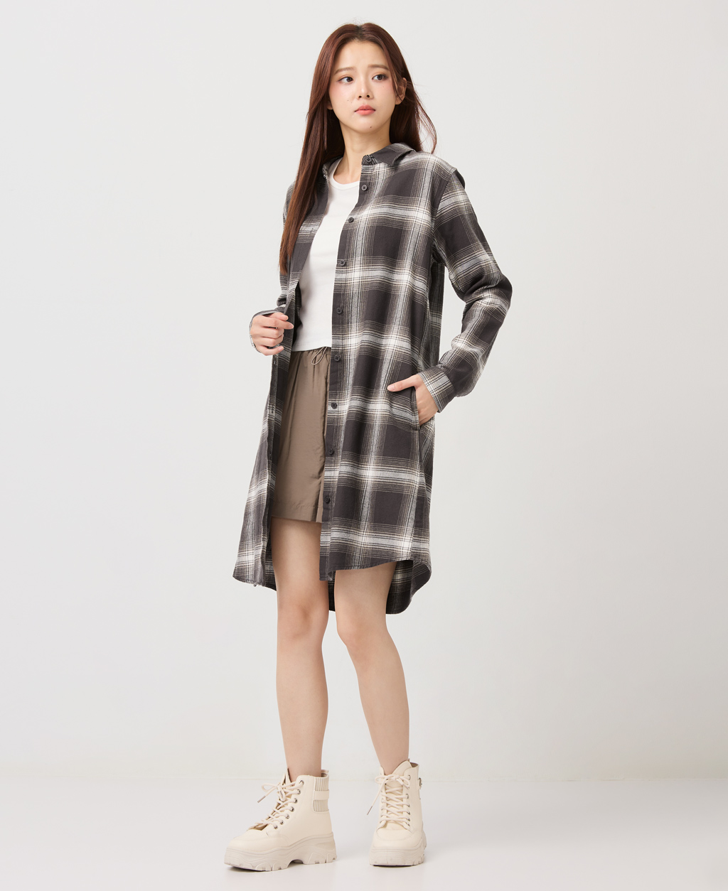 法蘭絨長版休閒襯衫
