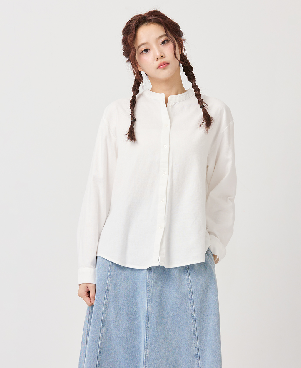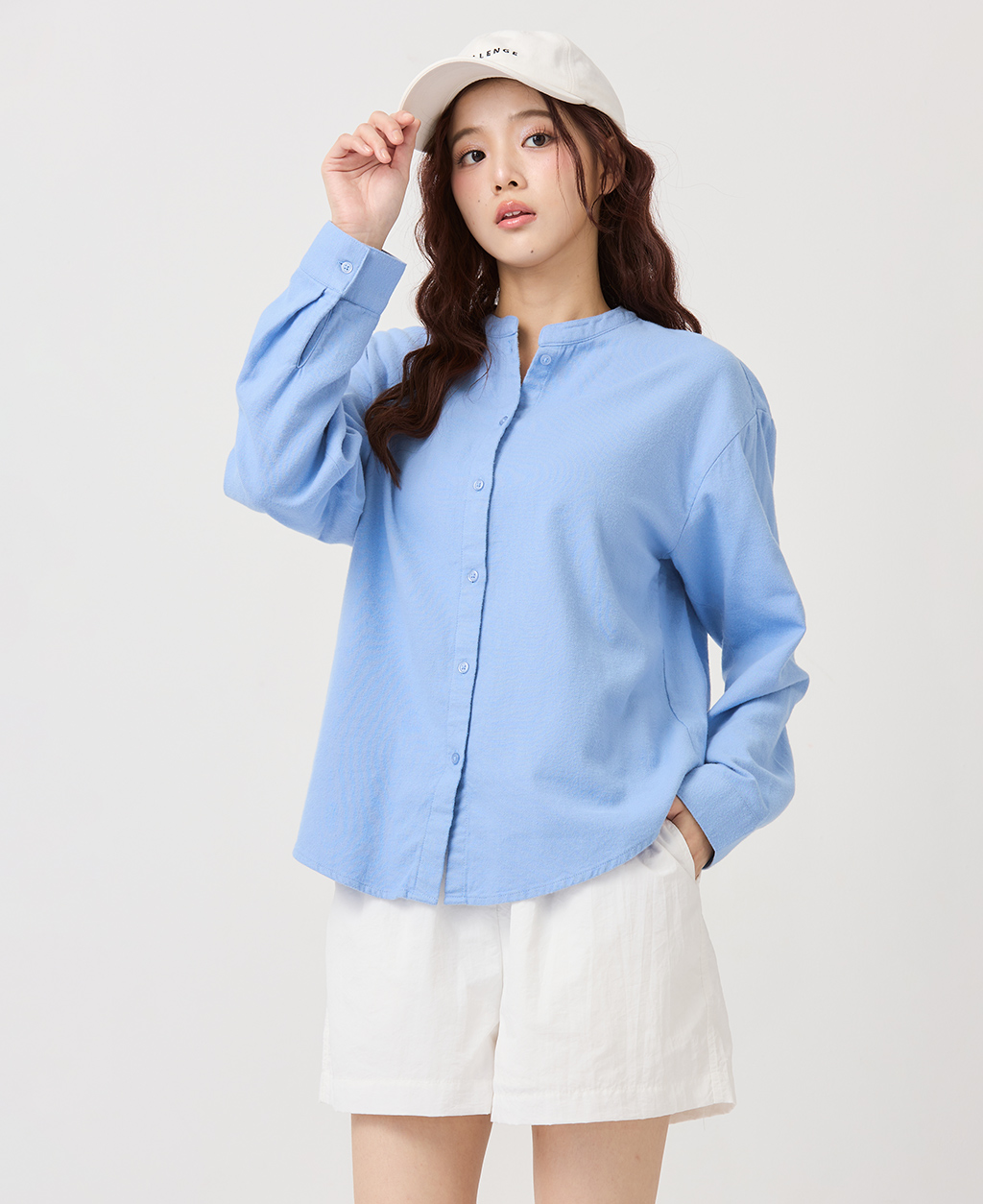 純棉立領長袖襯衫
