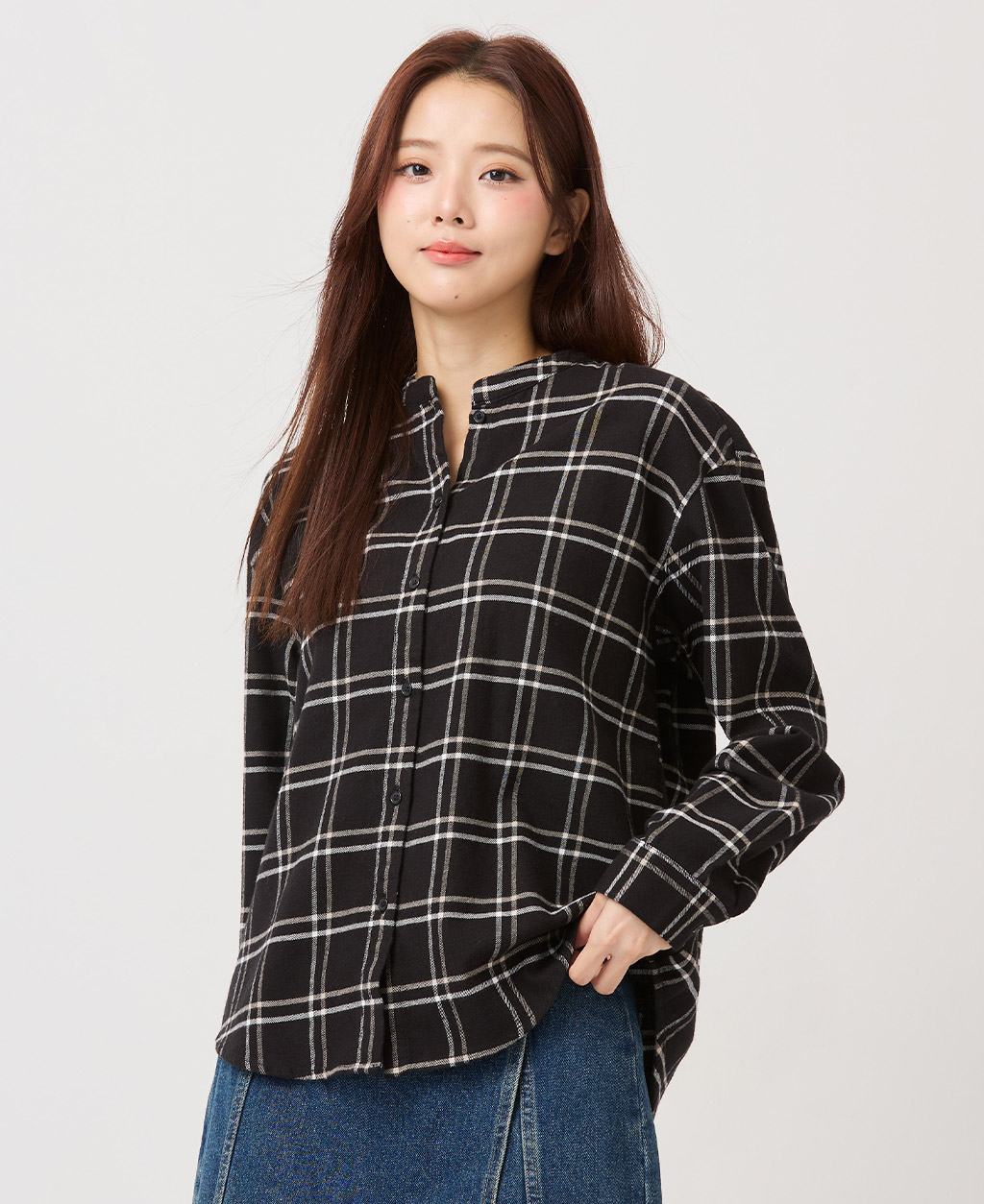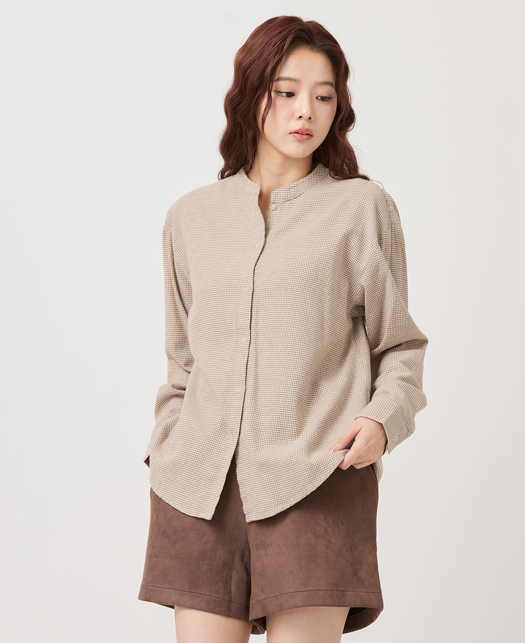 純棉立領長袖襯衫