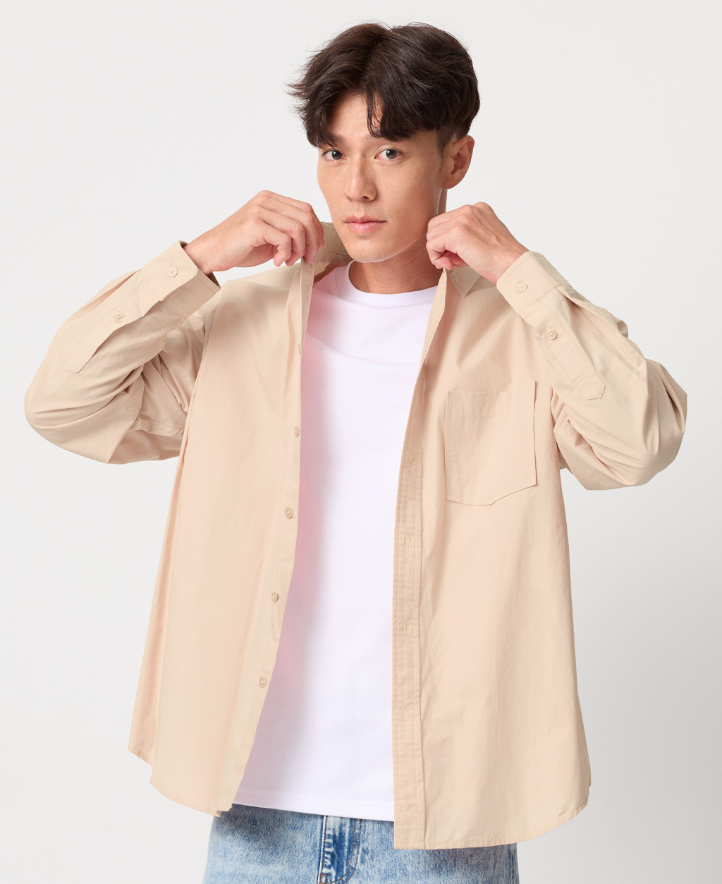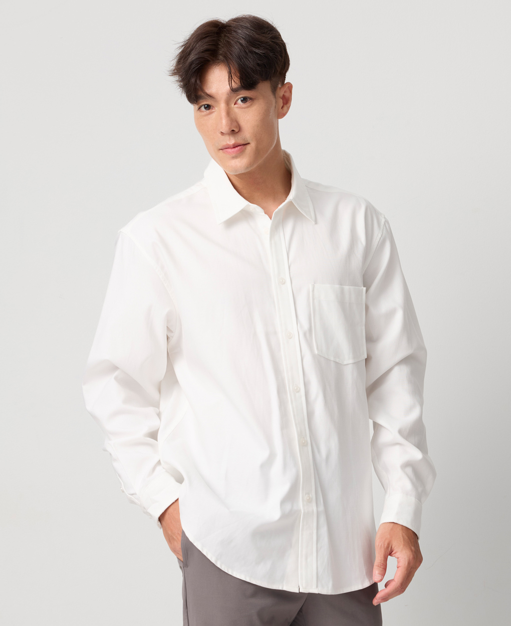 寬鬆型標準領長袖襯衫