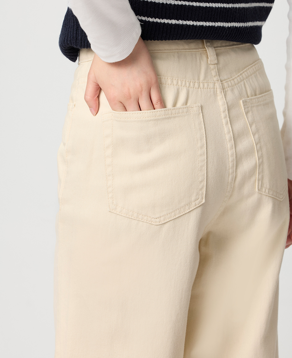 2.避免坐靠在淺色特別是潮濕的物體上,會有掉色可能。並小心與淺色衣物搭配,汗漬有可能導致未經洗水的牛仔商品褪色。