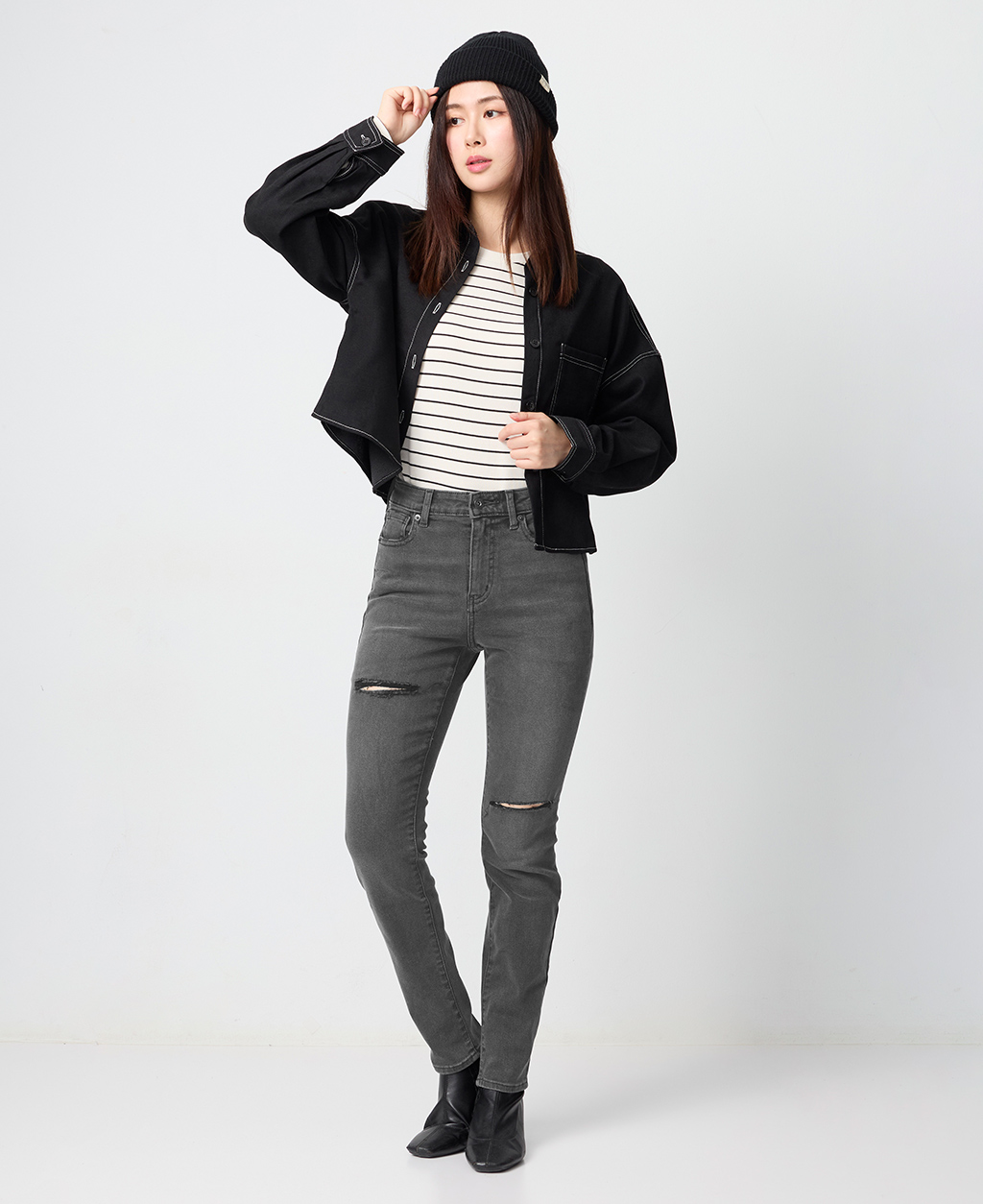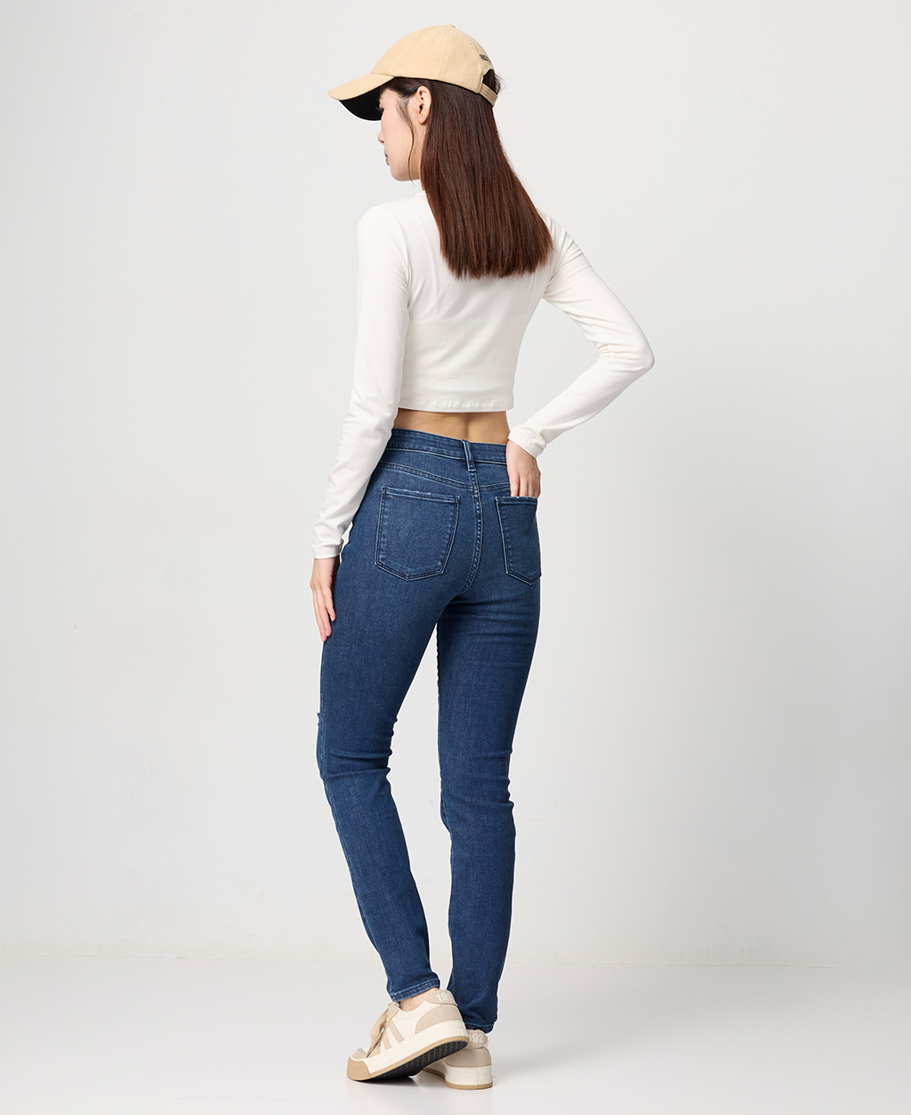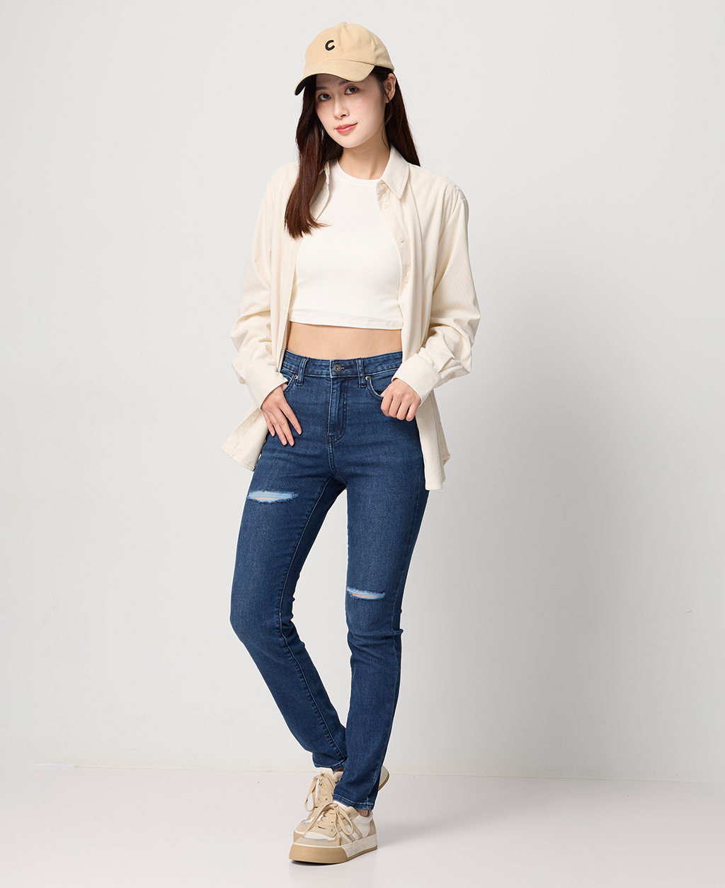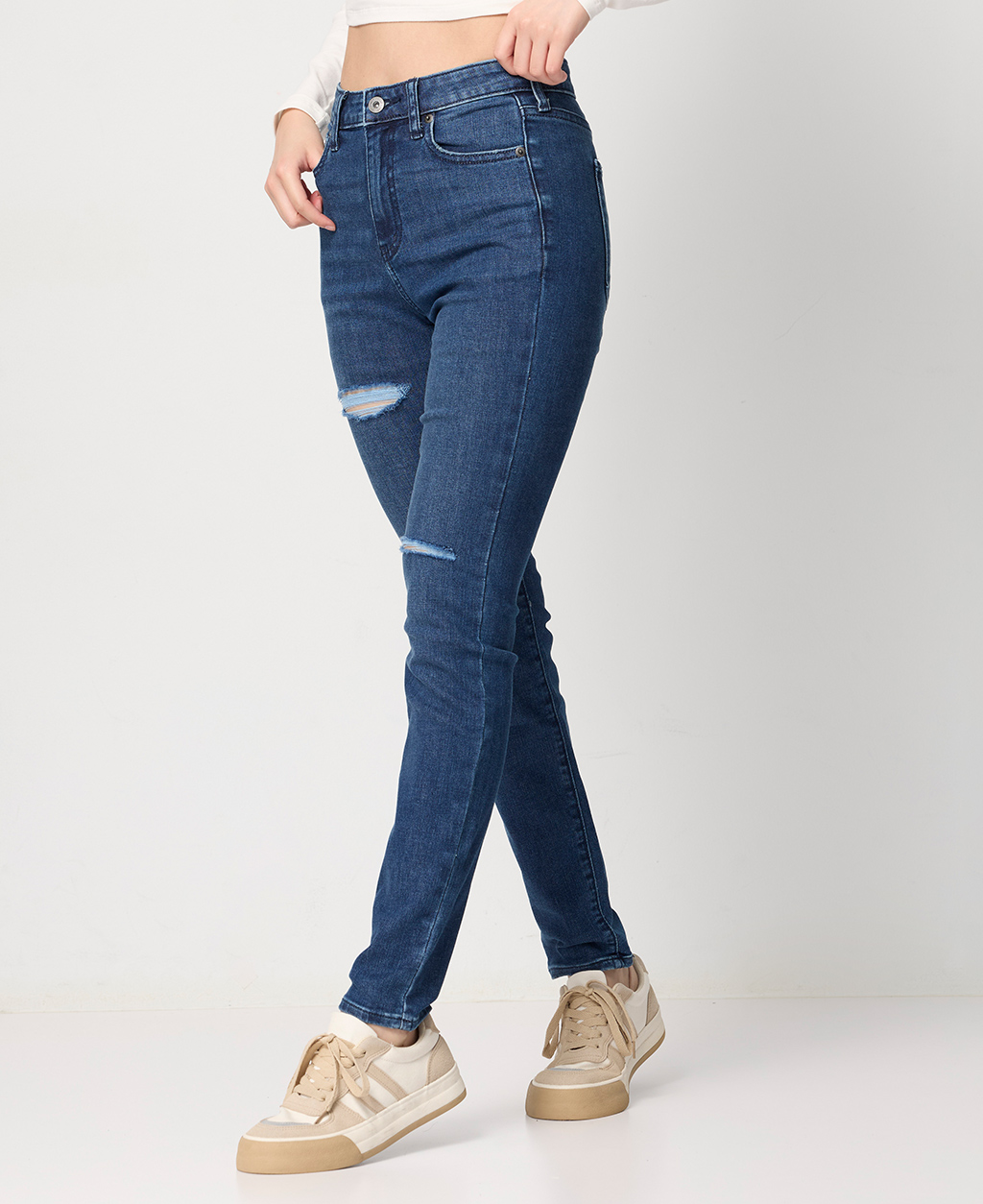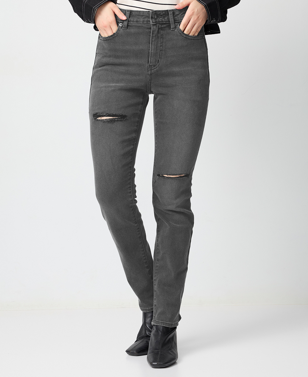 割破緊身窄管牛仔褲