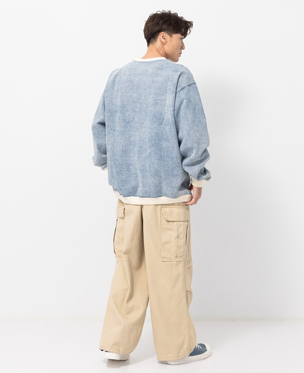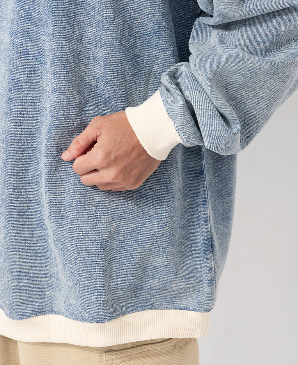 2.避免坐靠在淺色特別是潮濕的物體上,會有掉色可能。並小心與淺色衣物搭配,汗漬有可能導致未經洗水的牛仔商品褪色。
