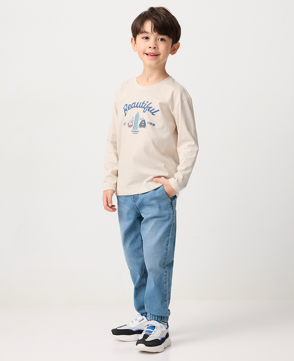 童Regular Fit縮口牛仔長褲(中性款)