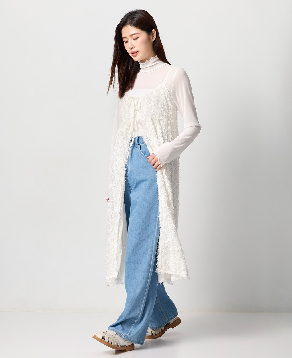 1.此商品因面料編織特性上的原因,紗支精密細緻,纖維如被指甲或突起物、飾物及包類上的金屬部分等勾拉,可能會產生抽紗破洞的現象,穿著保管時請注意。