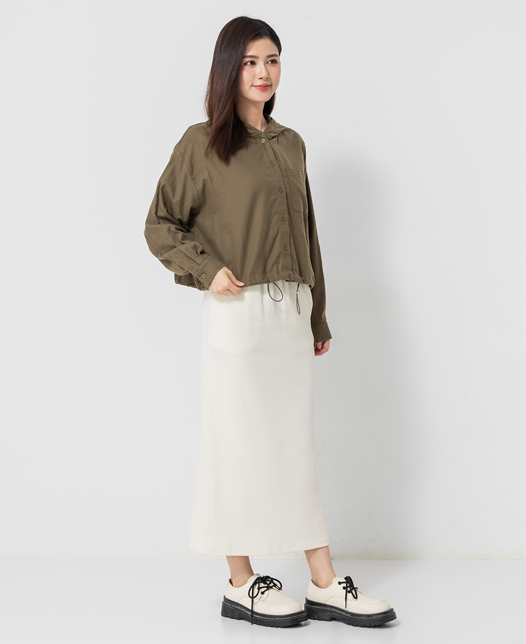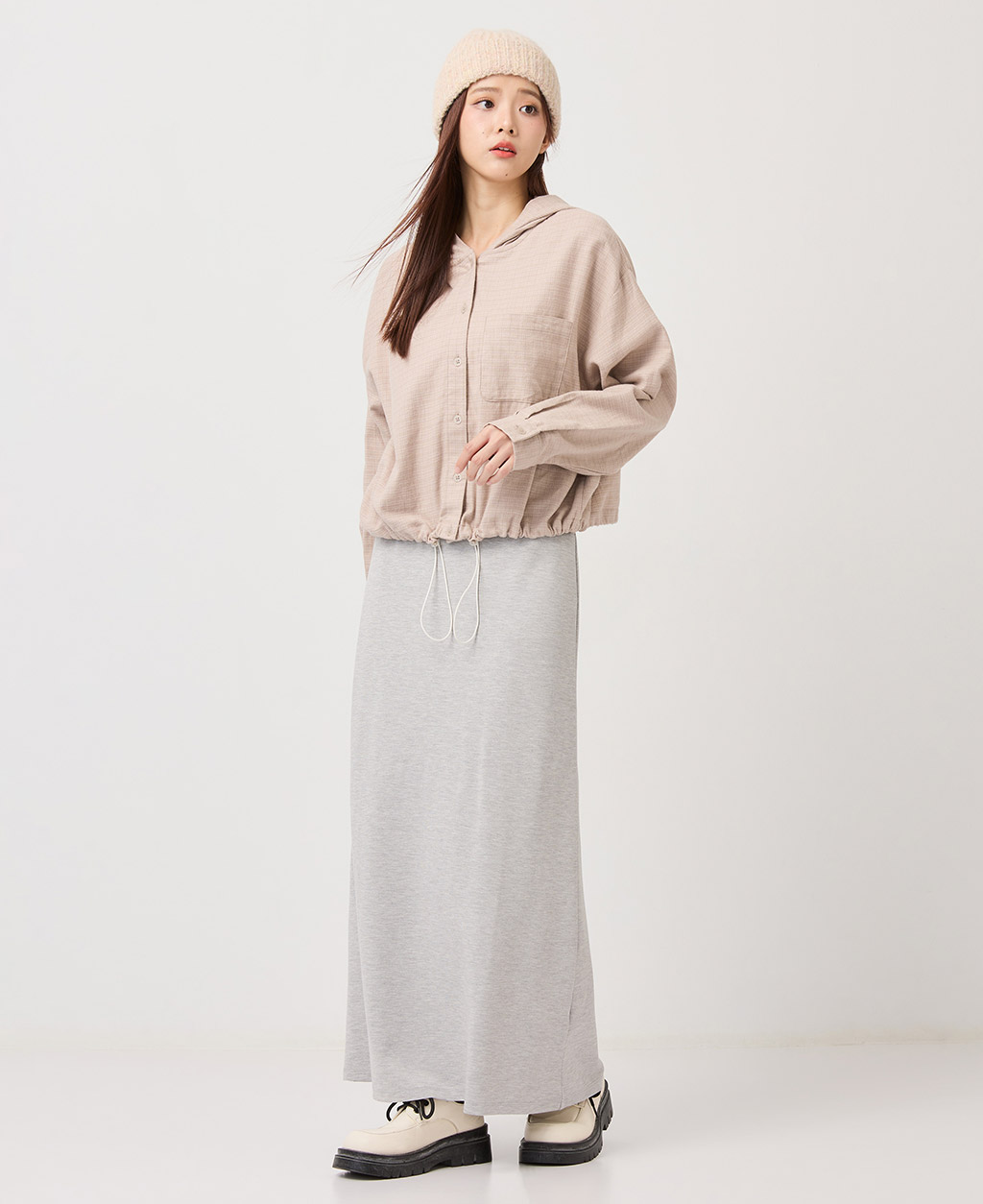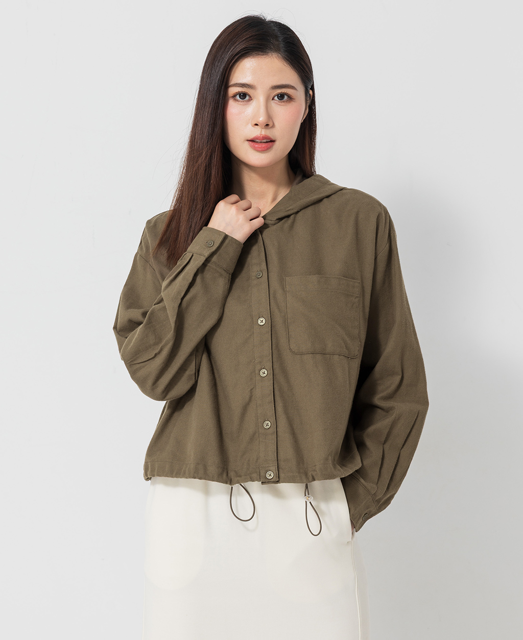 口袋下擺抽繩連帽上衣