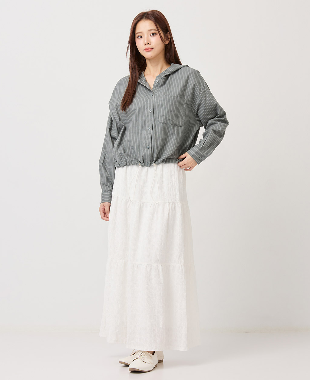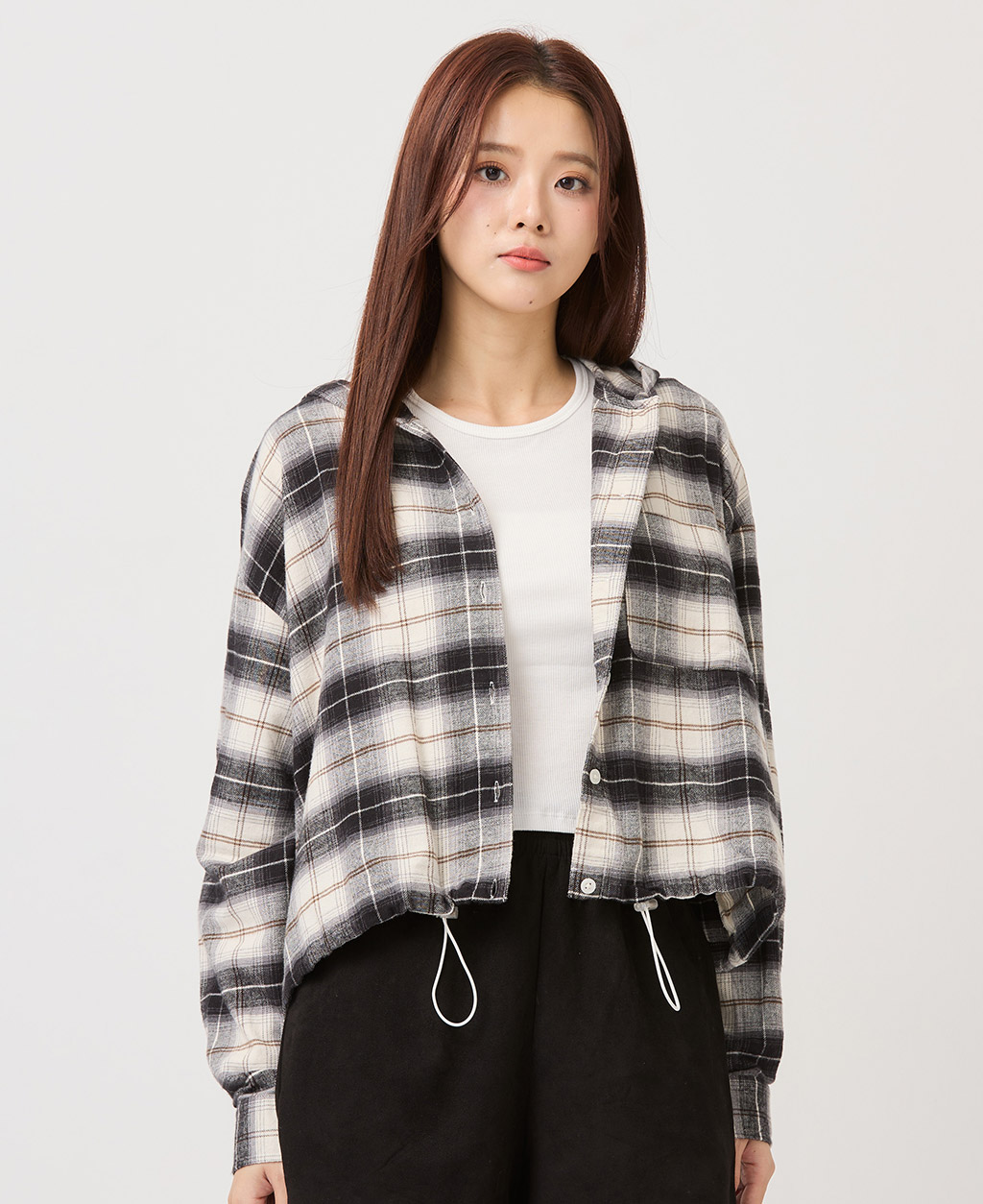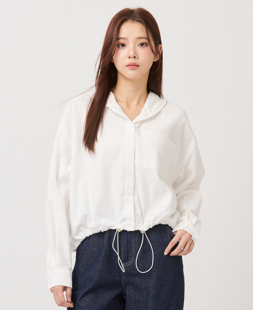 口袋下擺抽繩連帽上衣