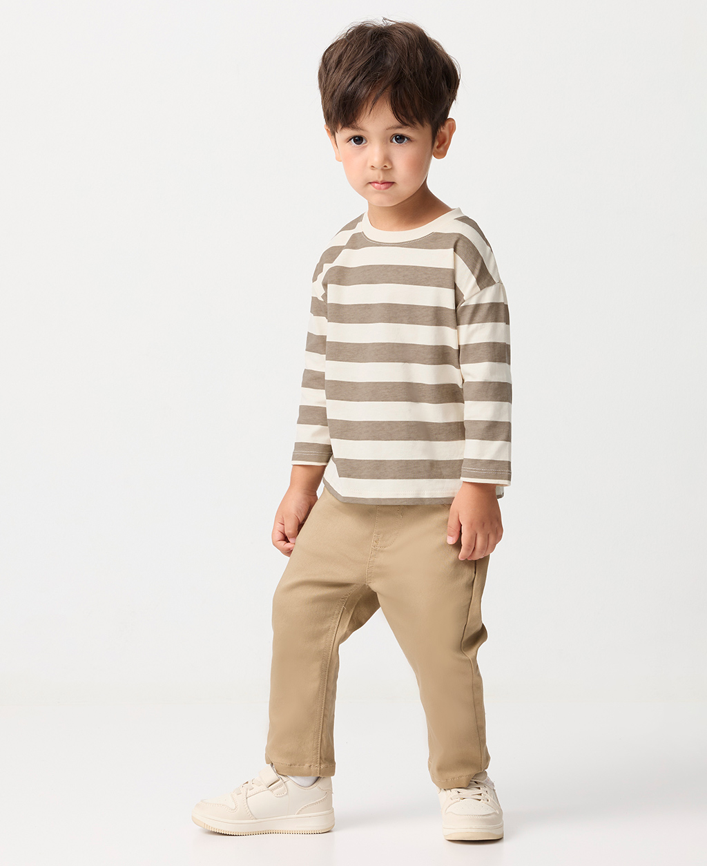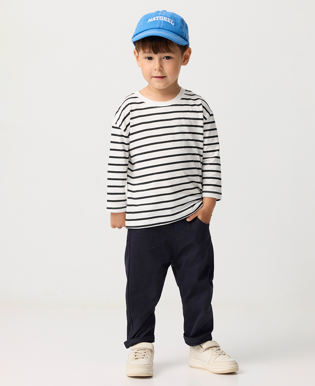 BABY條紋落肩圓領長T