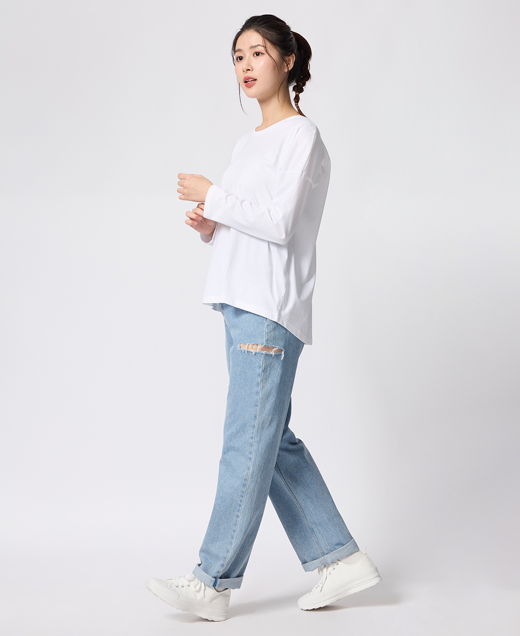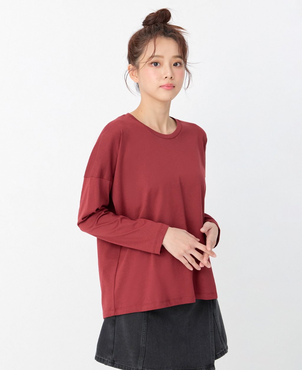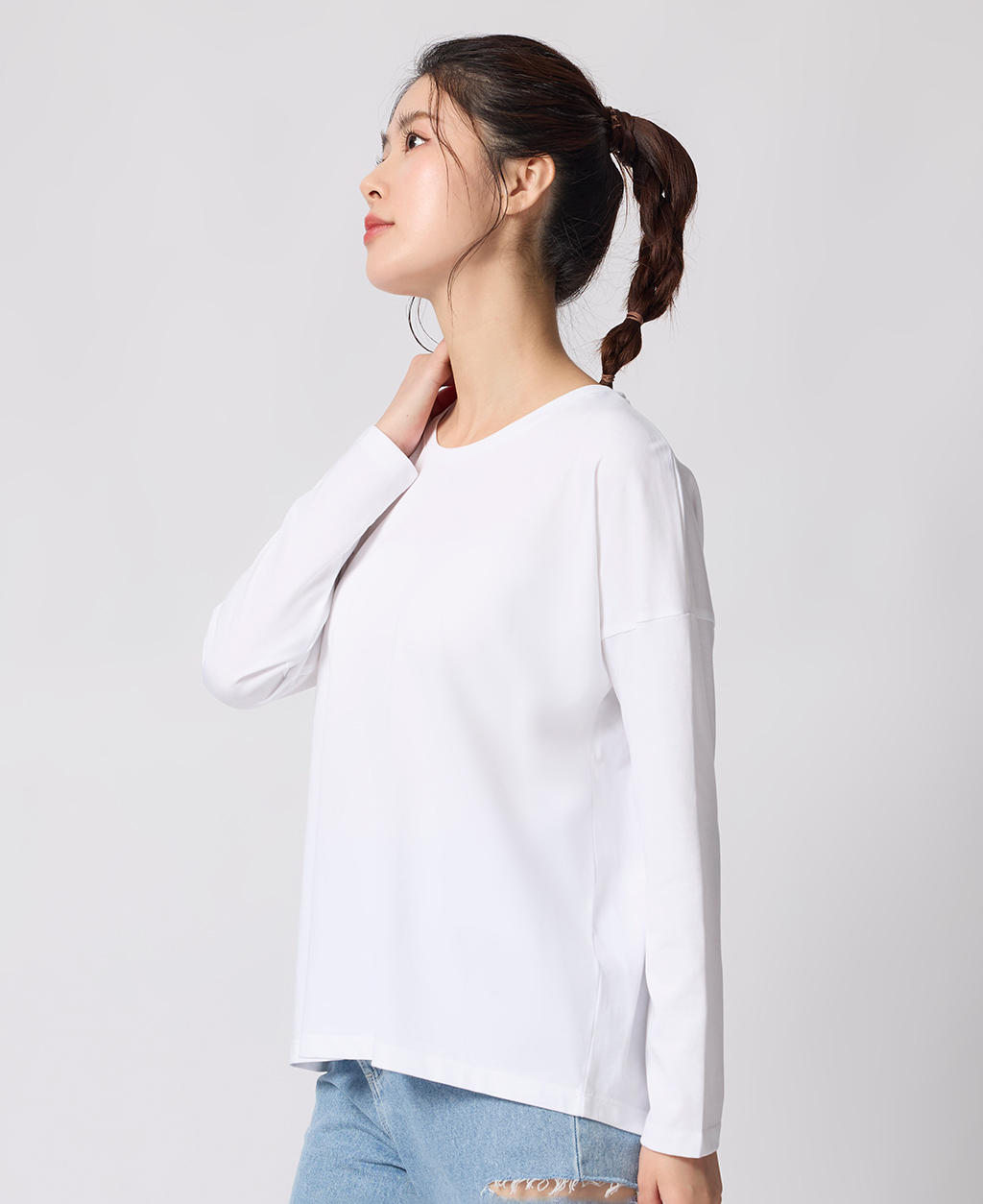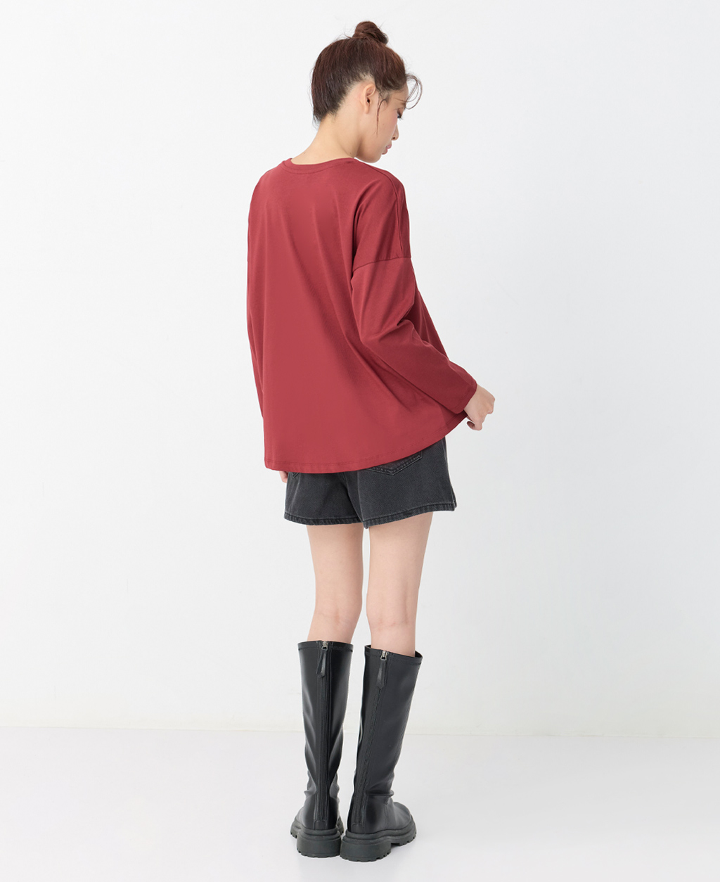 圓領落肩寬鬆上衣