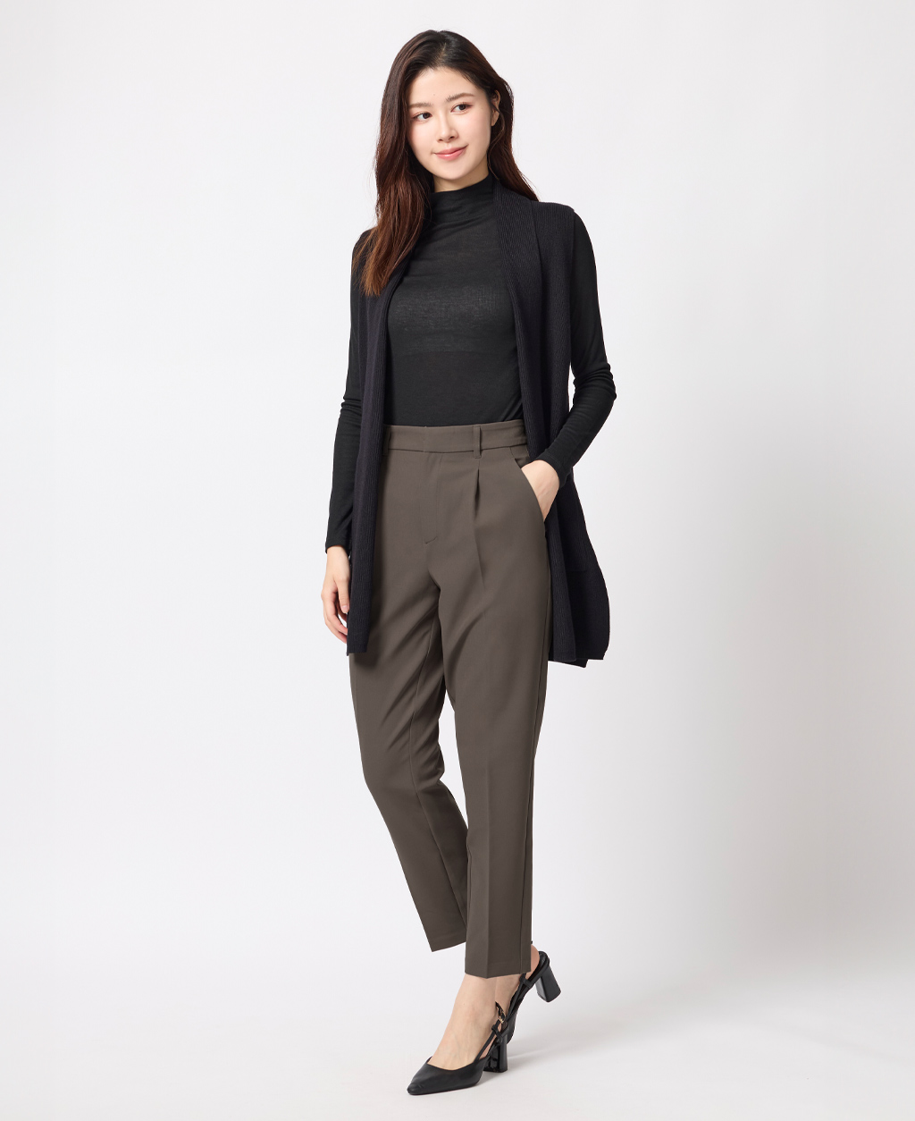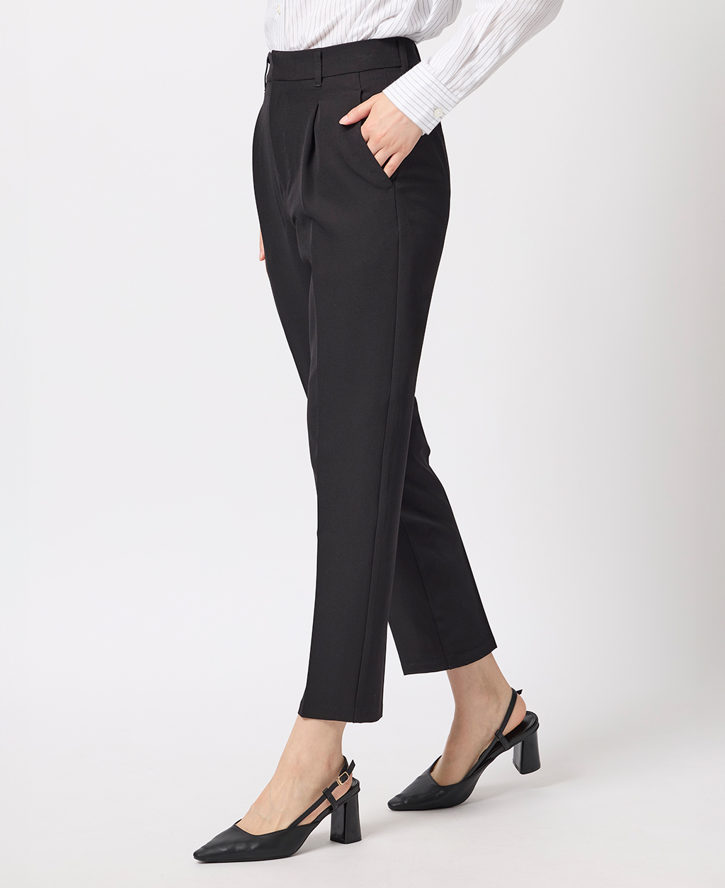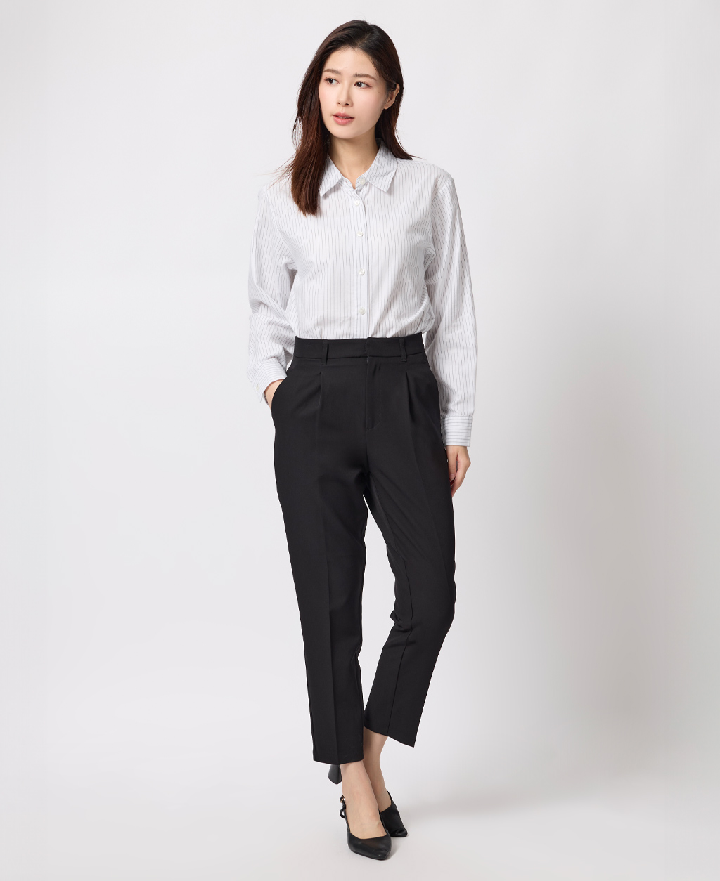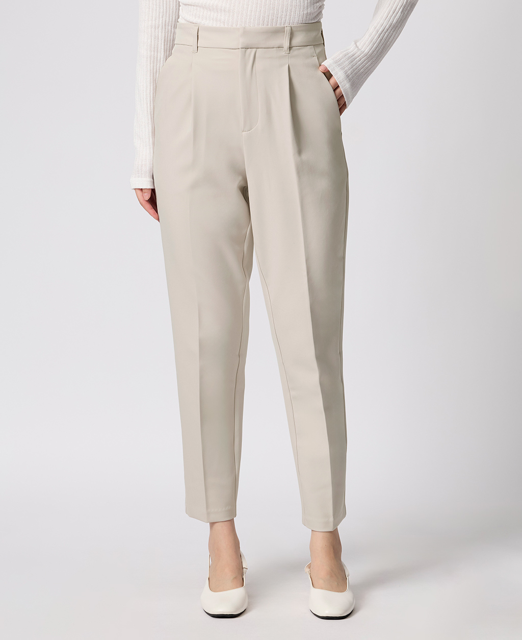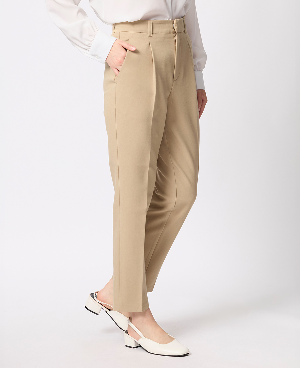 上班族後鬆緊打褶長褲