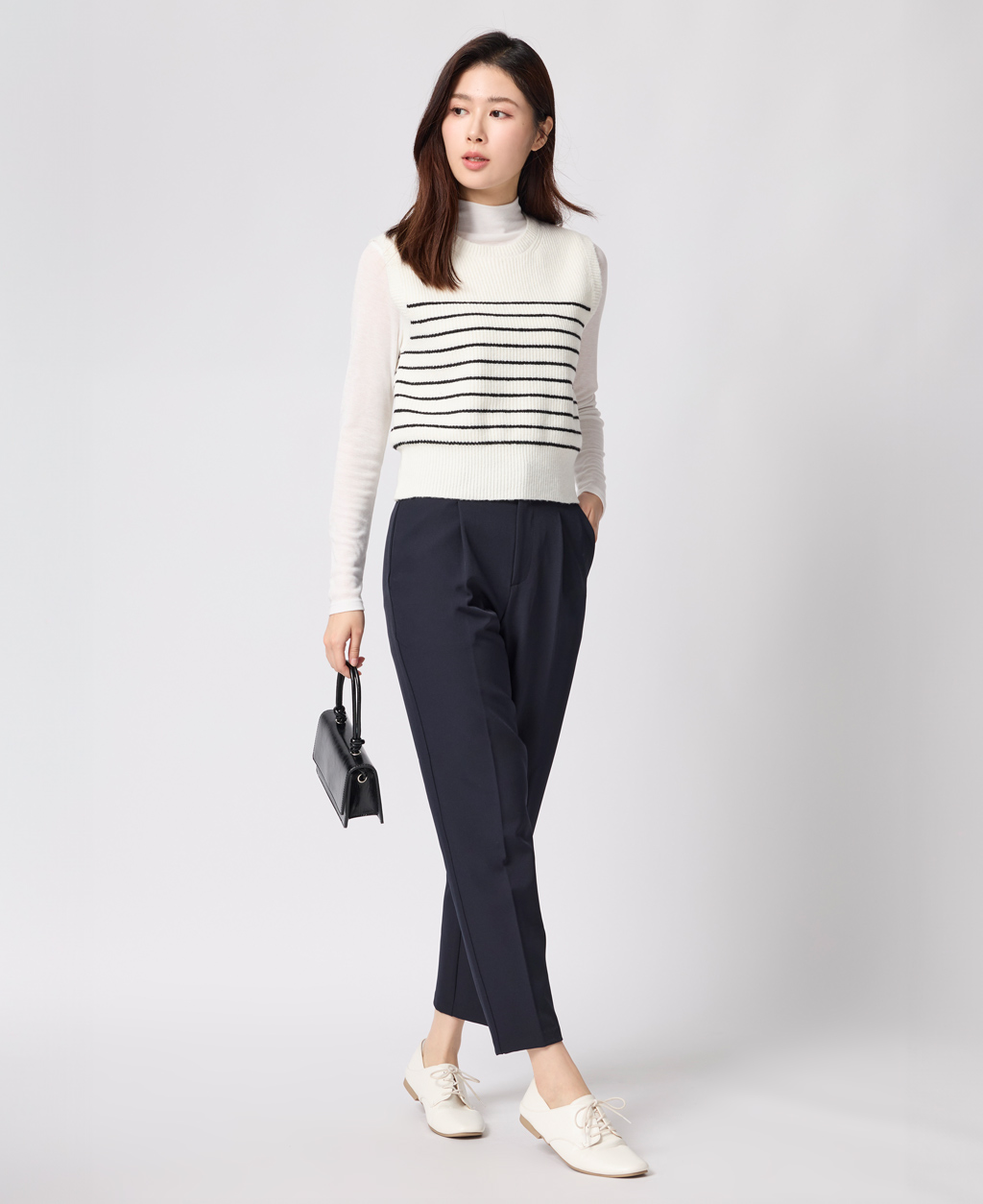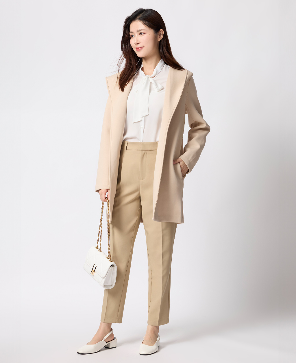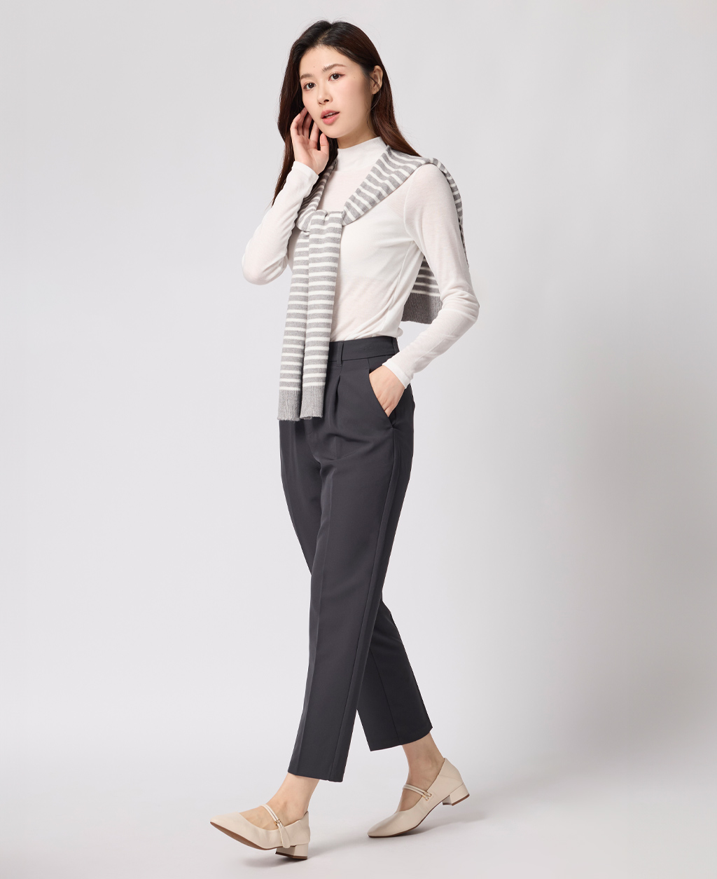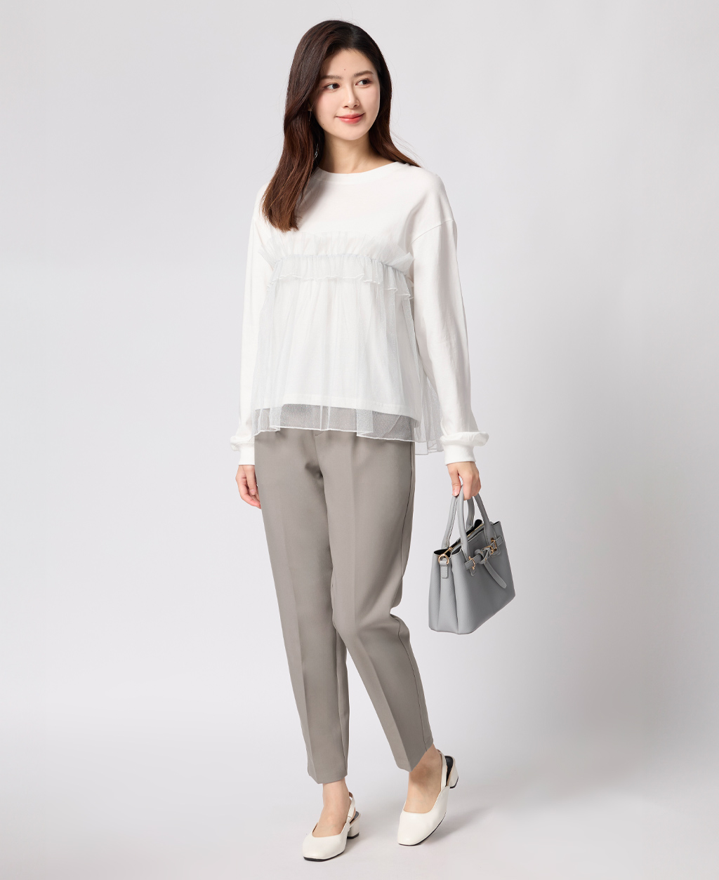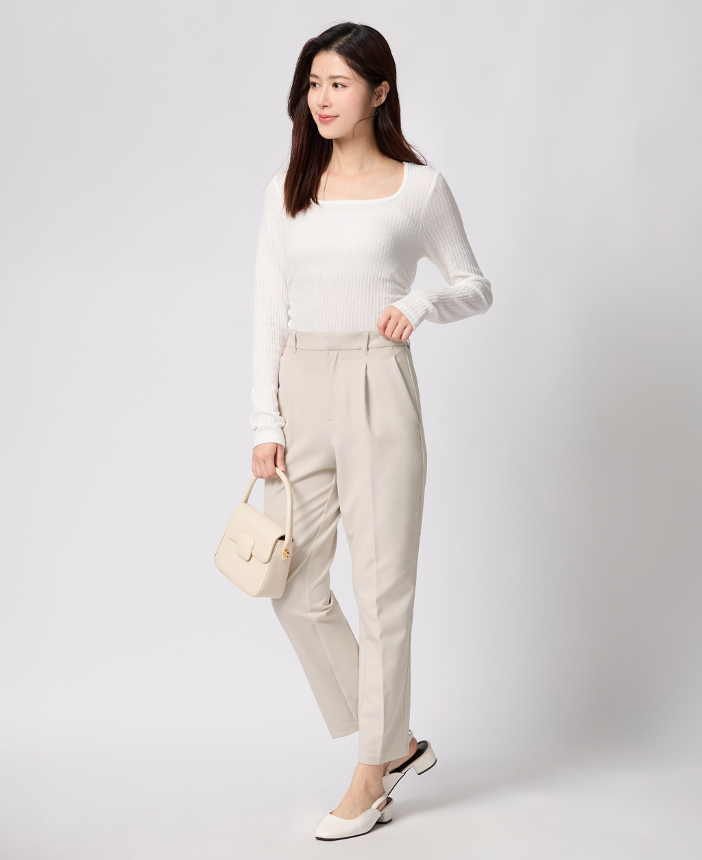 上班族後鬆緊打褶長褲