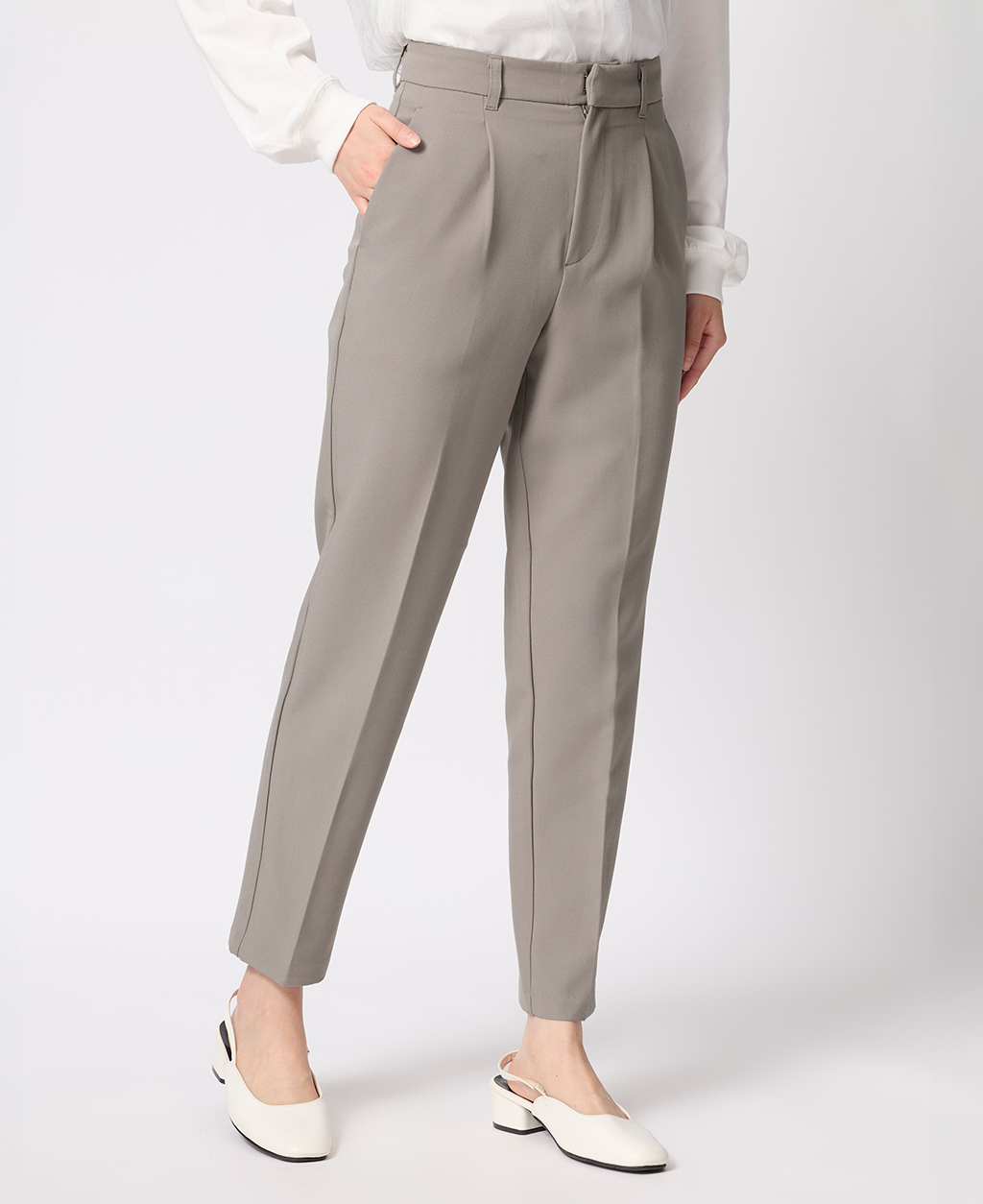 上班族後鬆緊打褶長褲