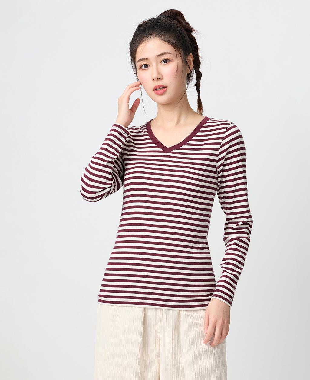 條紋V領T恤