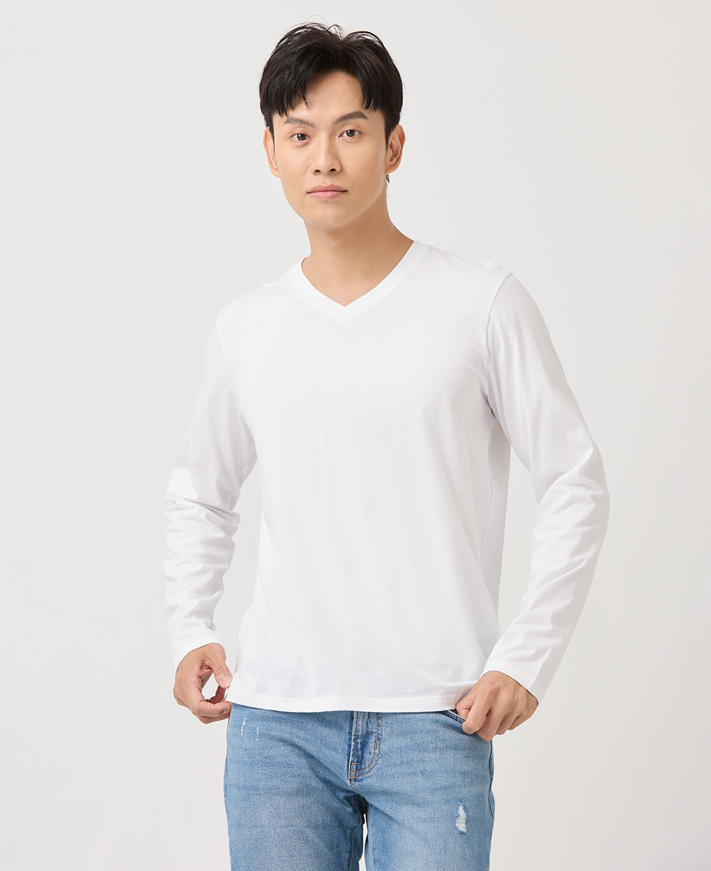 V領素色上衣