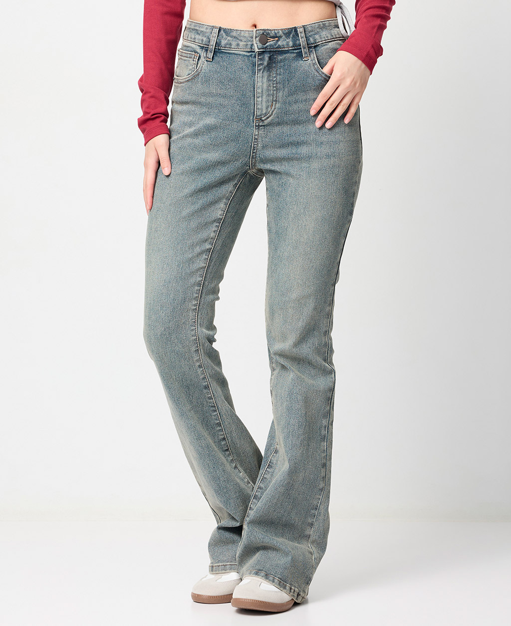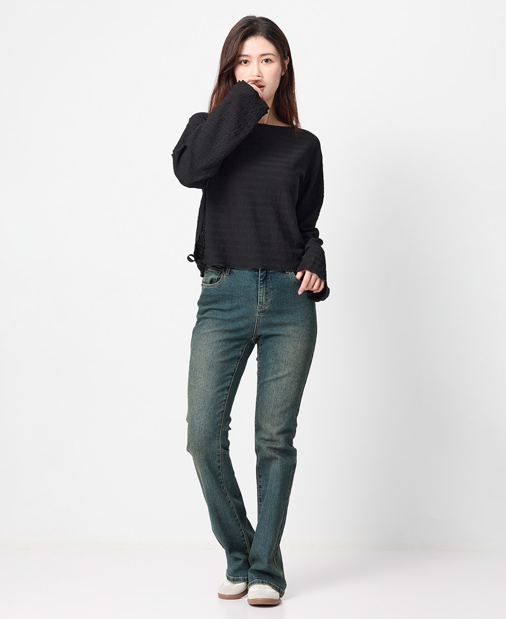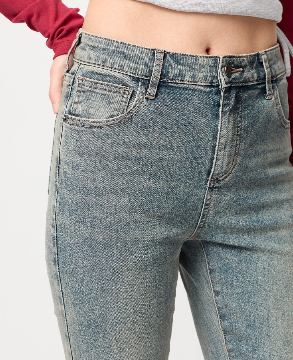 2.避免坐靠在淺色特別是潮濕的物體上,會有掉色可能。並小心與淺色衣物搭配,汗漬有可能導致未經洗水的牛仔商品褪色。