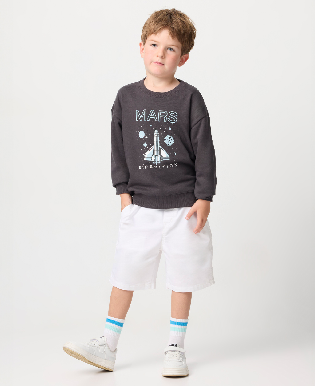 童太空梭落肩毛圈大學T