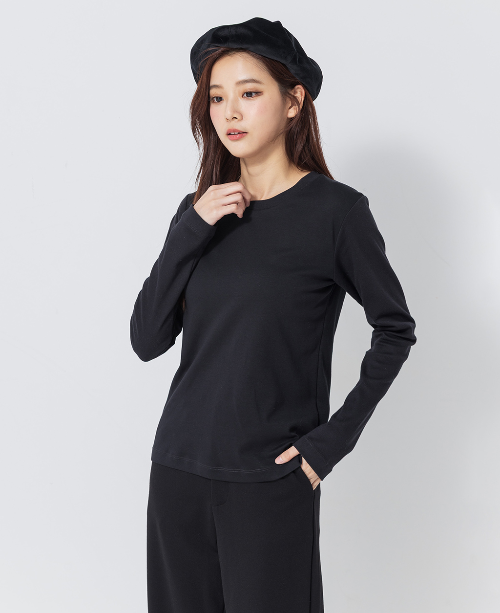 吸濕保暖圓領素色上衣