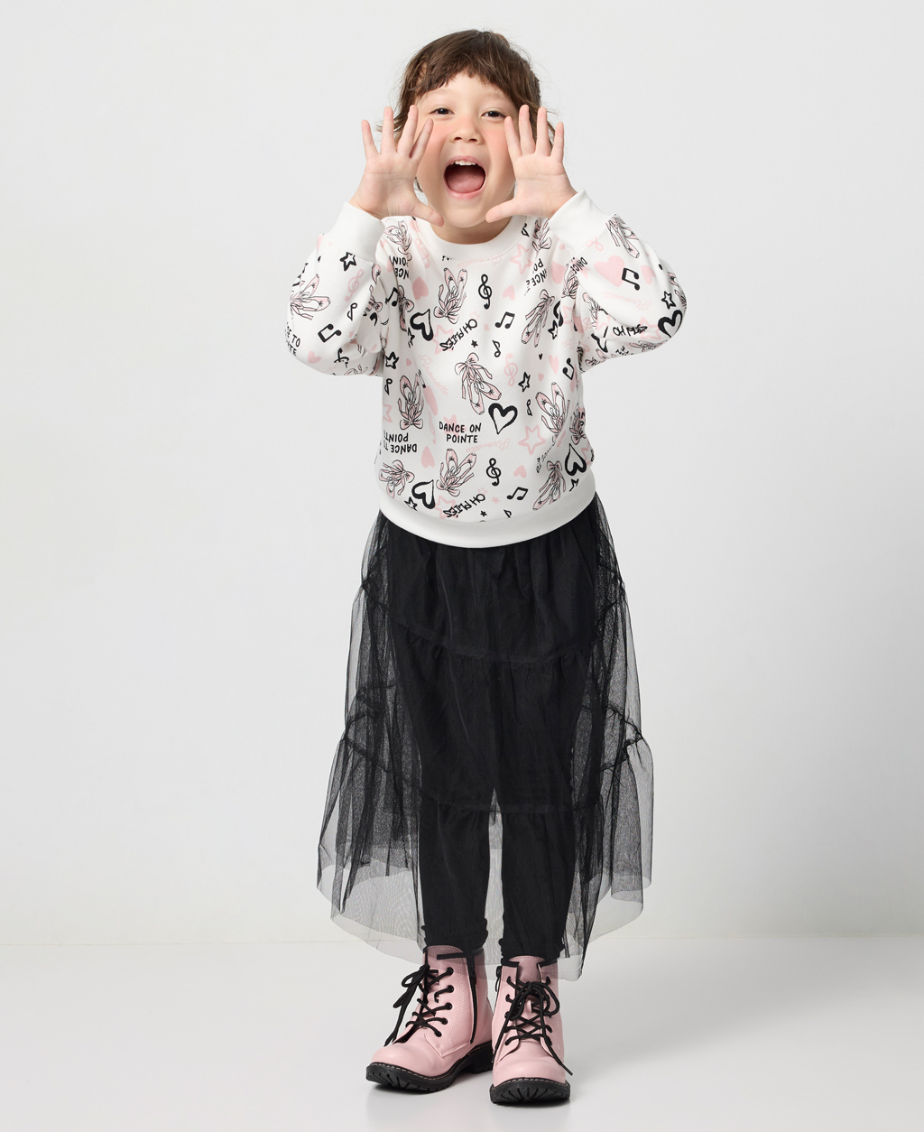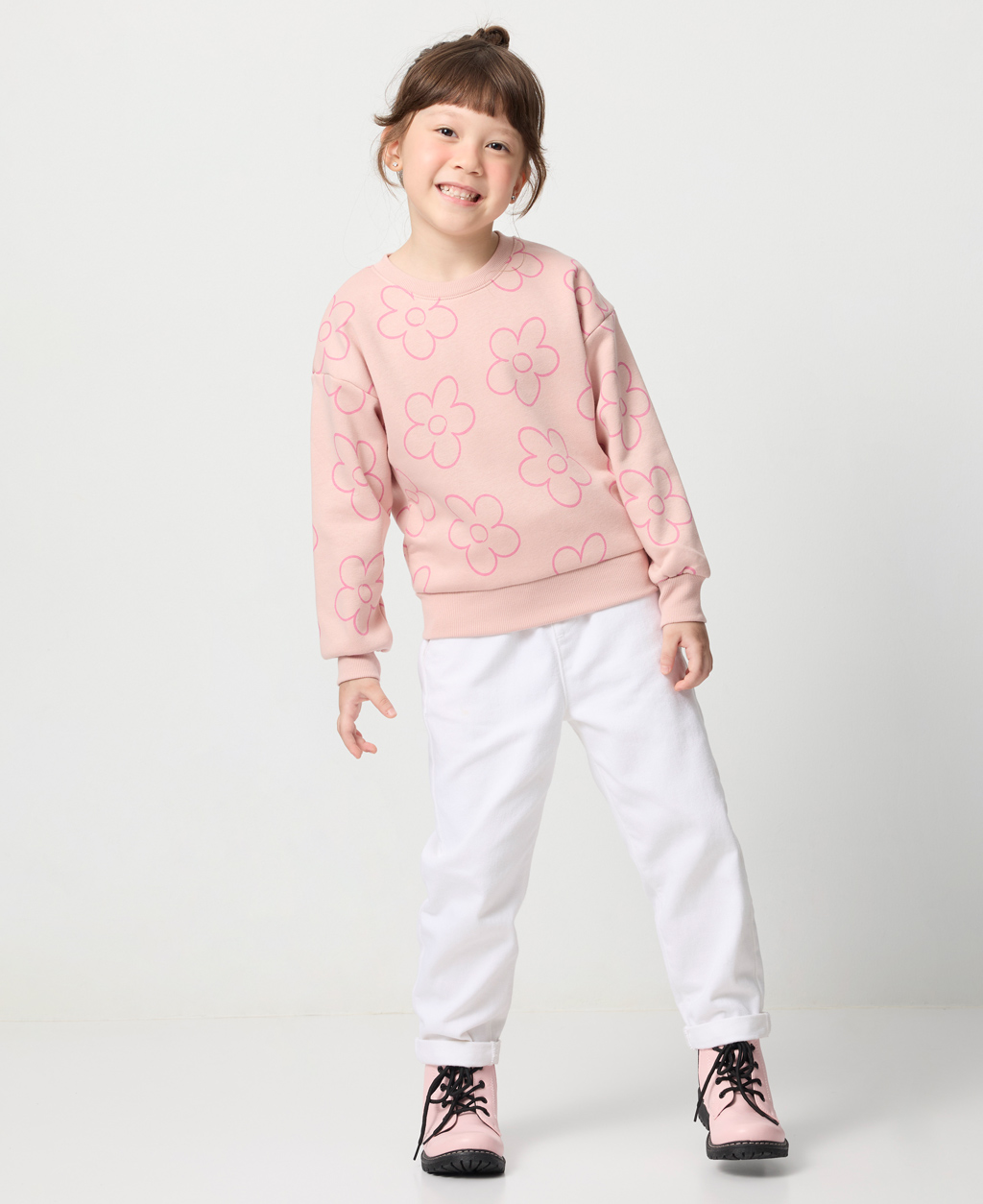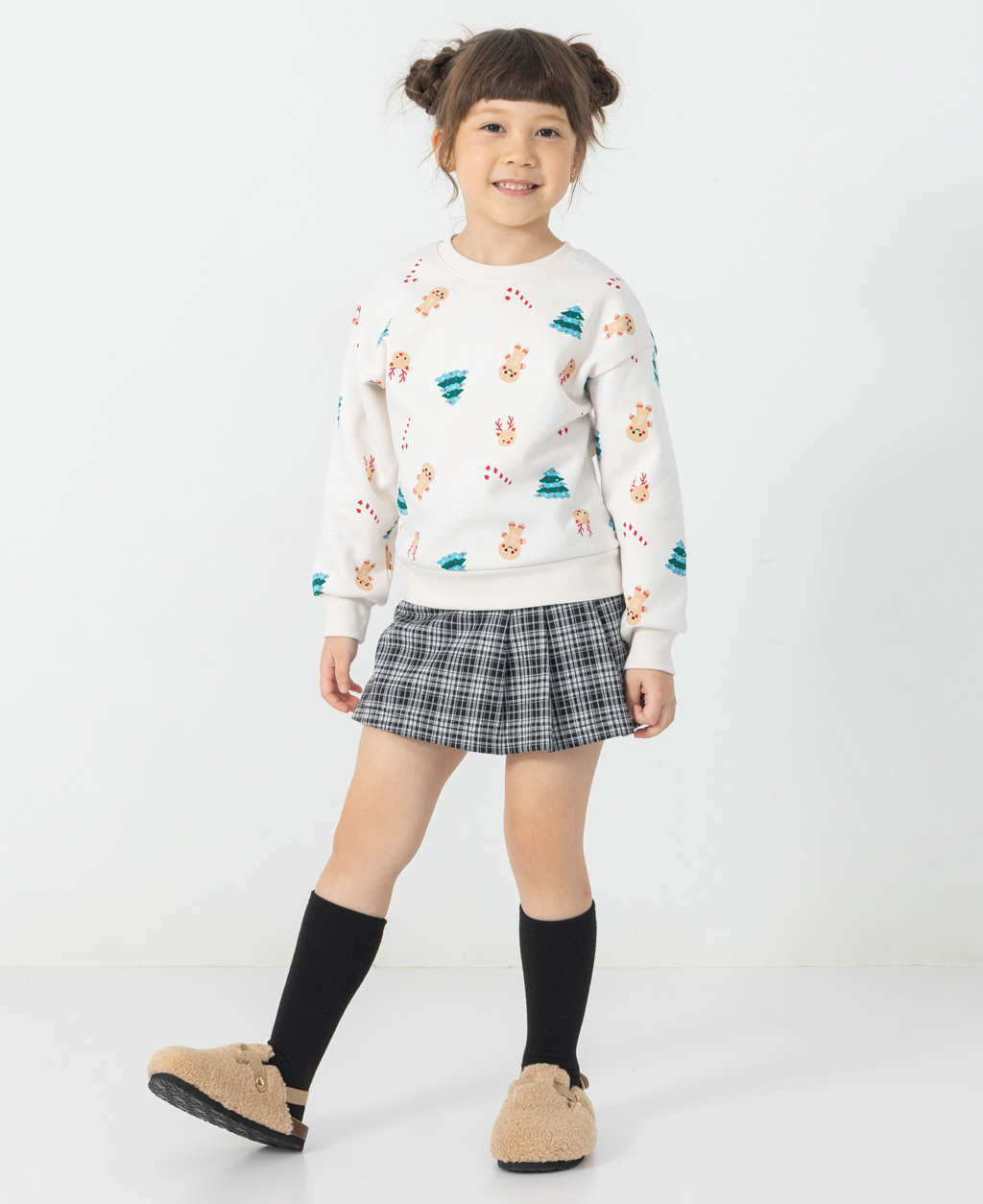 童滿版印花落肩刷毛大學T