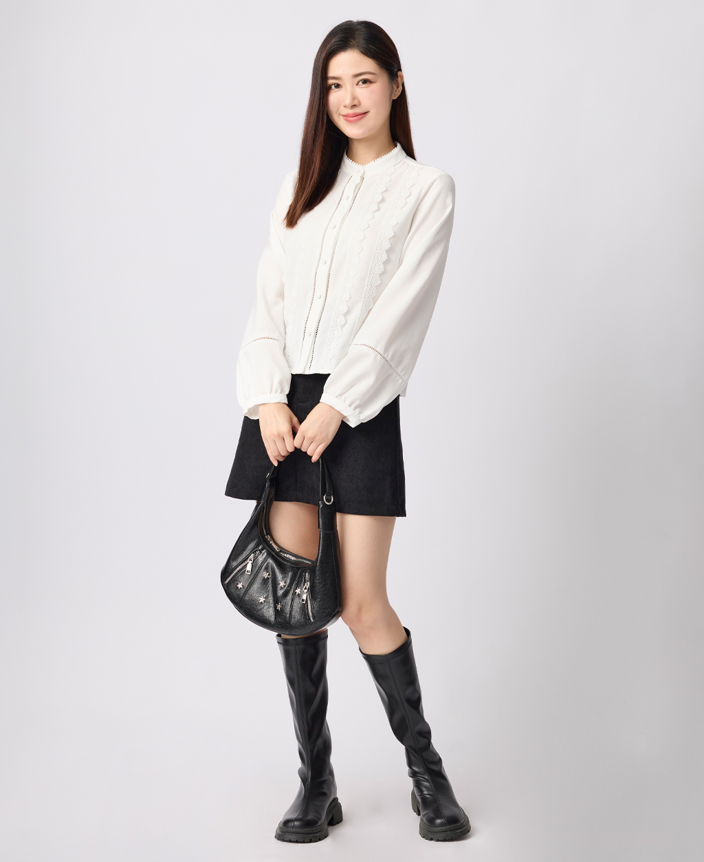 1.此布料因編織特性,如被指甲或突起物、飾物及包包上的金屬裝飾等勾拉,可能會產生抽紗破洞的現象,穿著和保管時請注意。