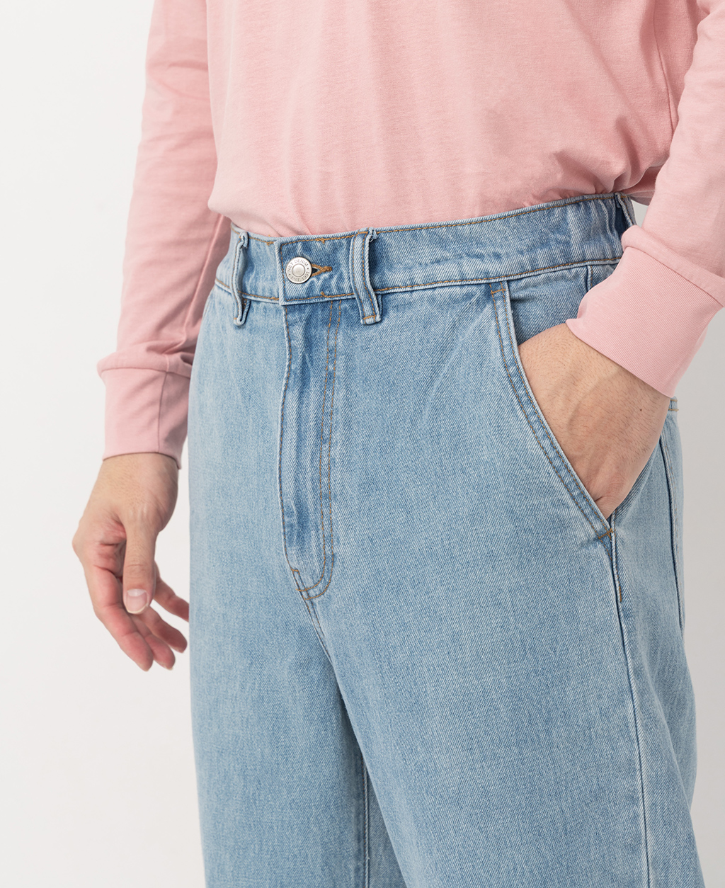 2.避免坐靠在淺色特別是潮濕的物體上,會有掉色可能。並小心與淺色衣物搭配,汗漬有可能導致未經洗水的牛仔商品褪色。