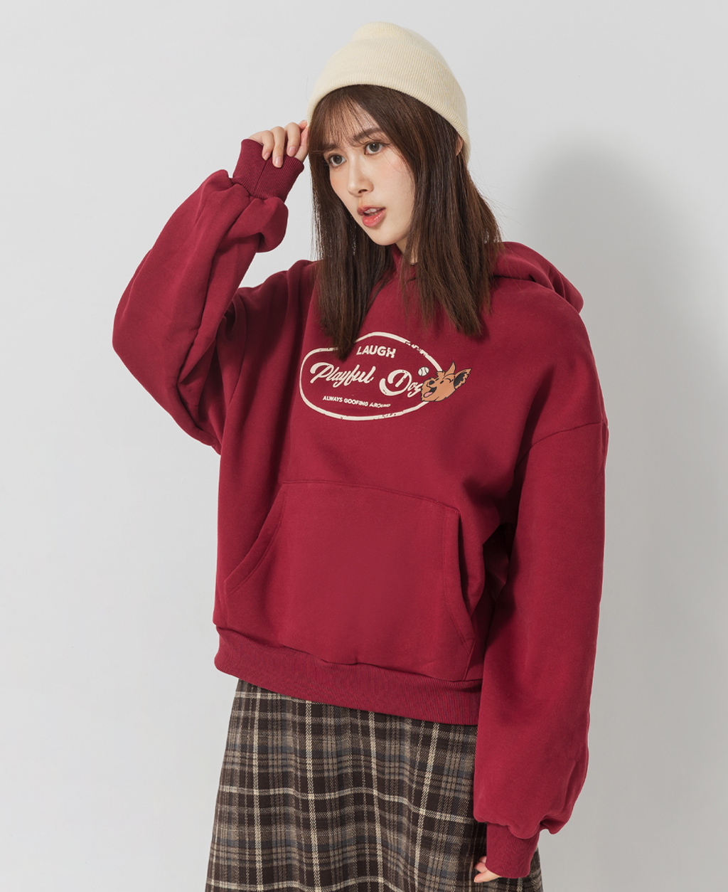美式動物印花刷毛帽T