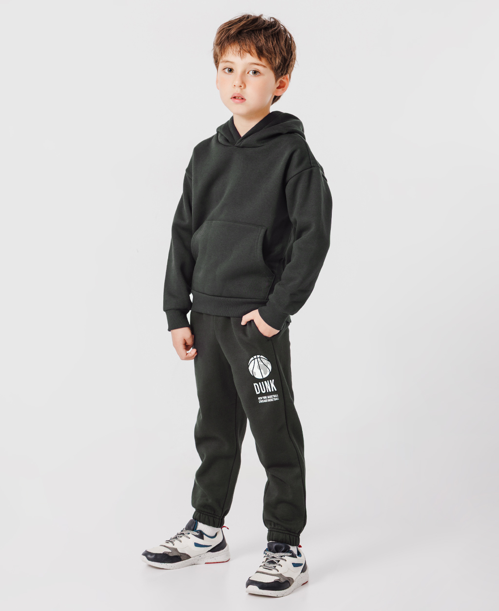 童寬版籃球印花刷毛縮口褲