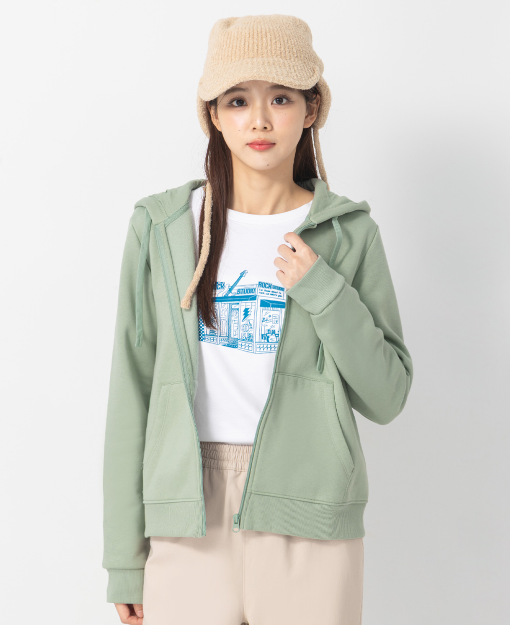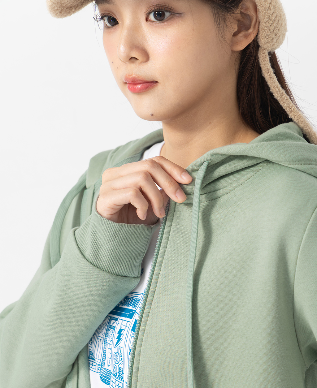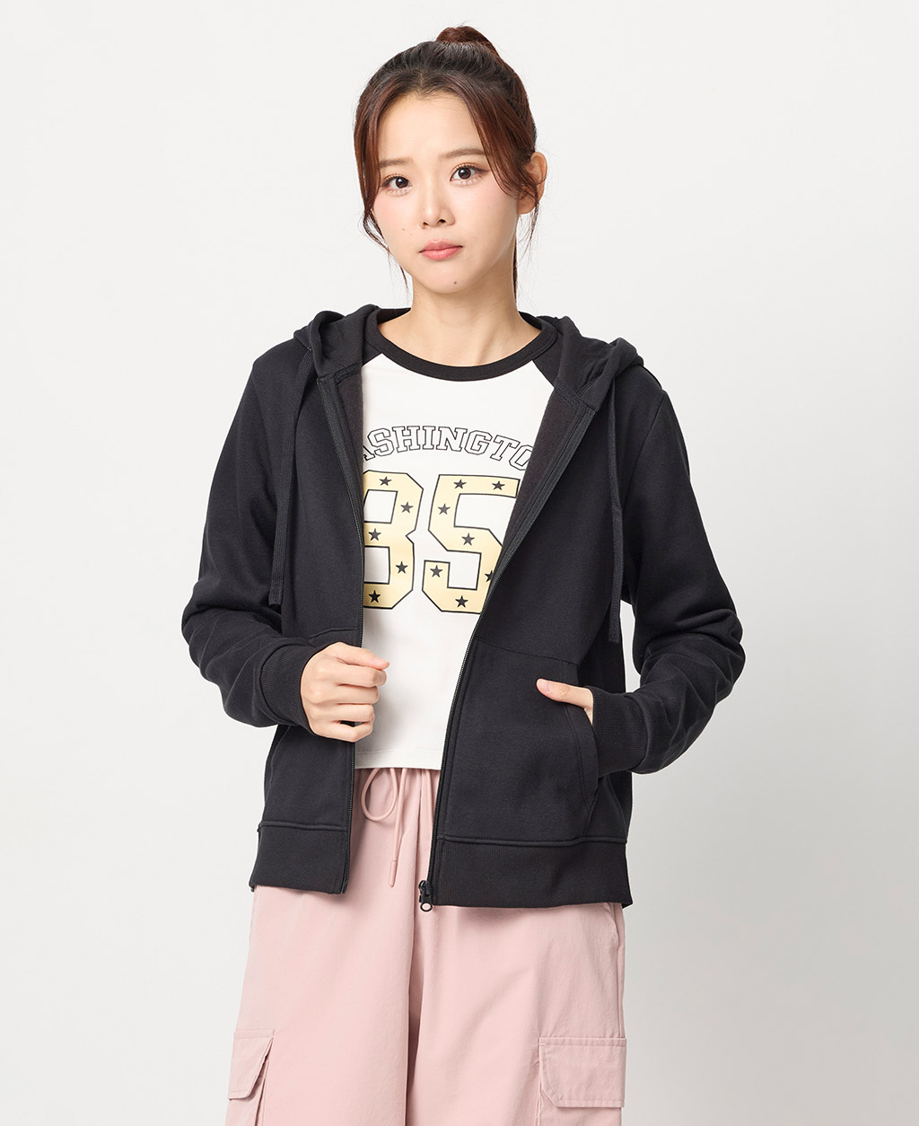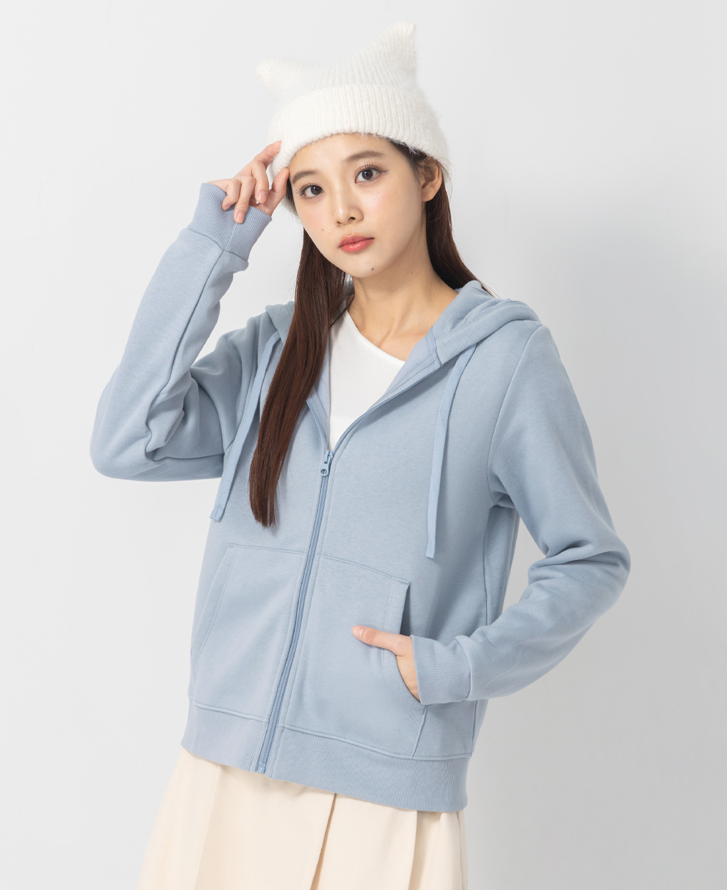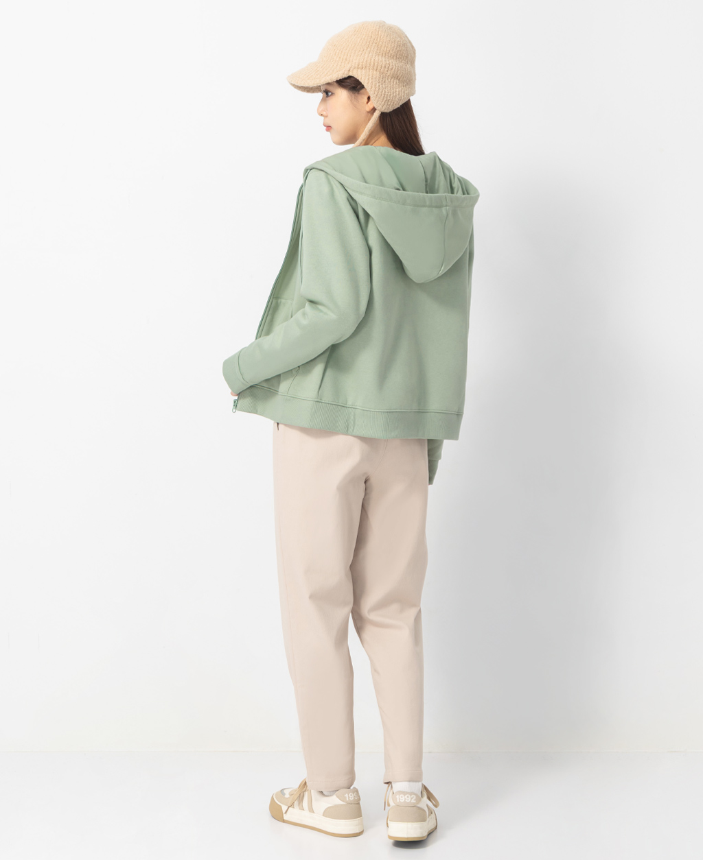 素色刷毛連帽外套