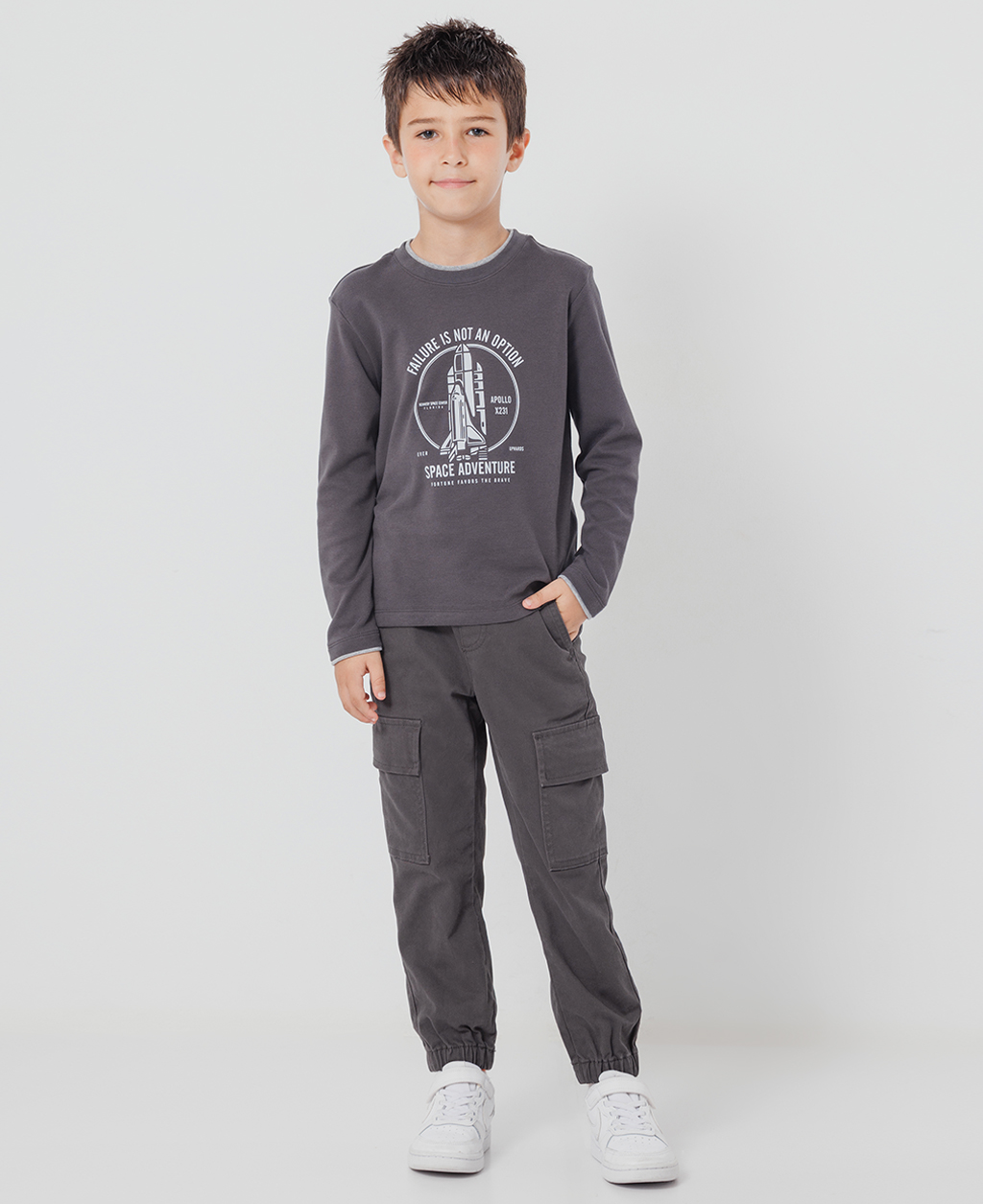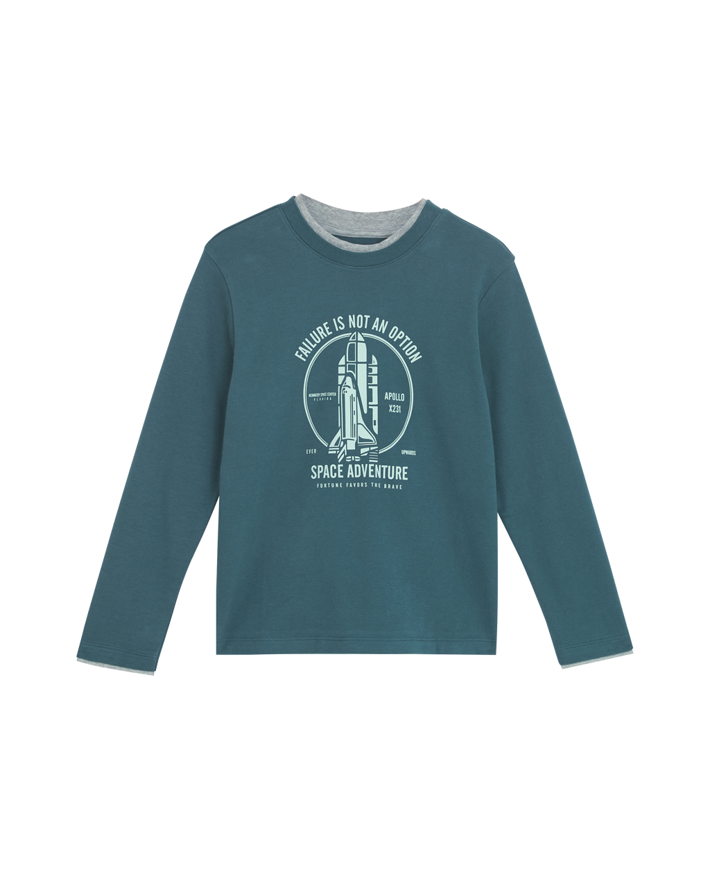 童吸濕保暖火箭印花雙層領長T
