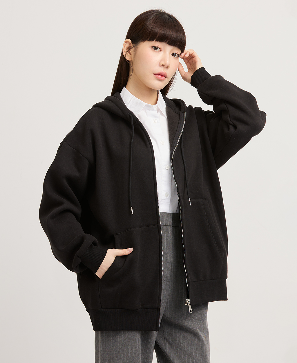 寬鬆刷毛基本休閒外套