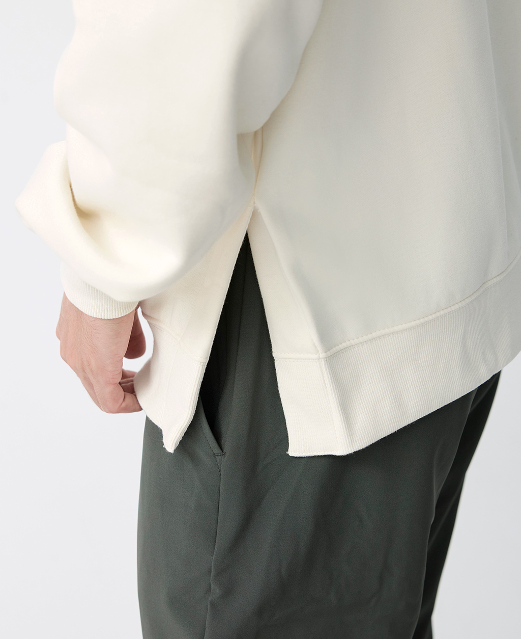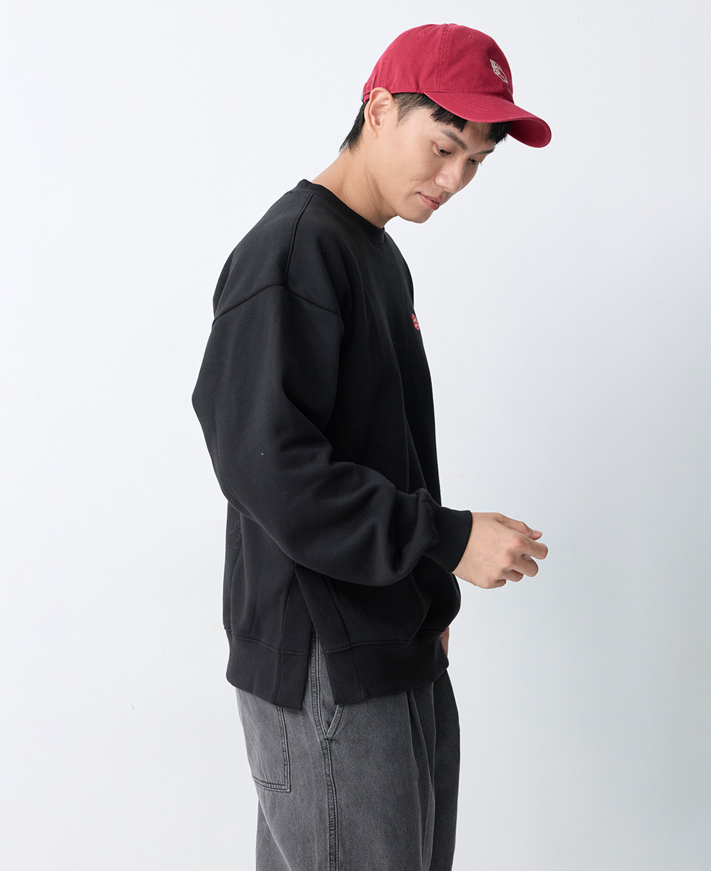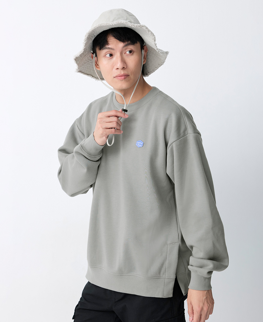圓領落肩下擺開衩大學T