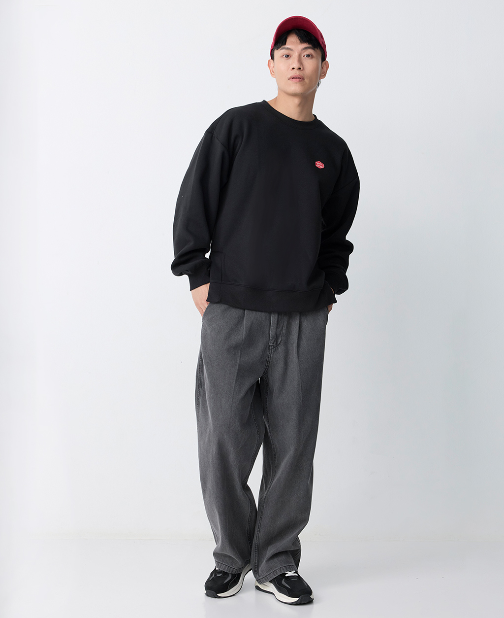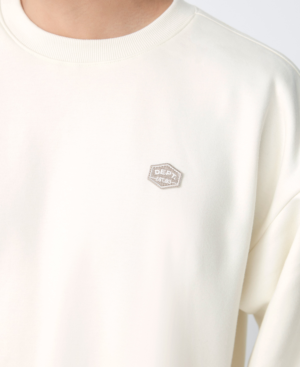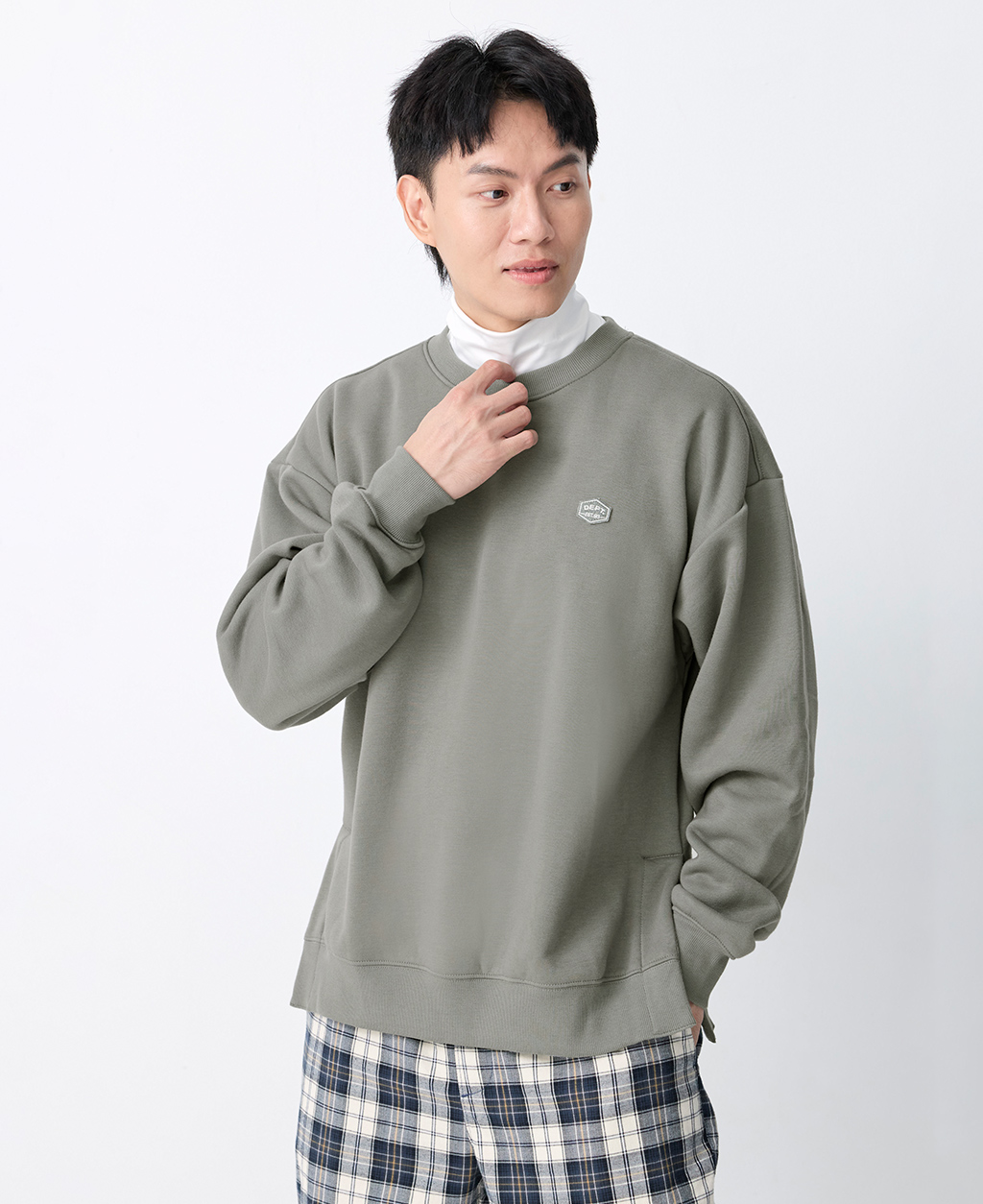 圓領落肩下擺開衩大學T
