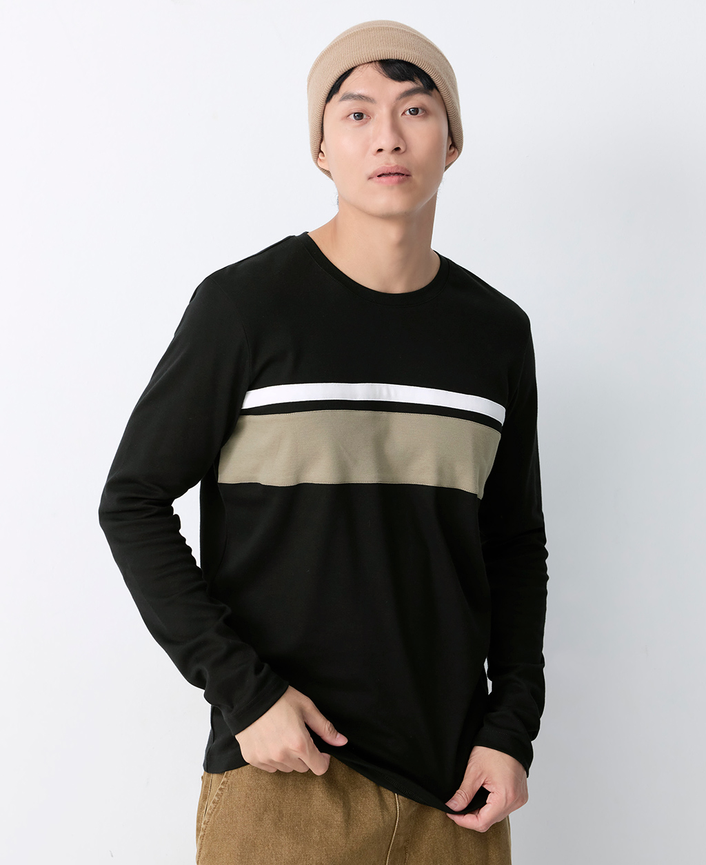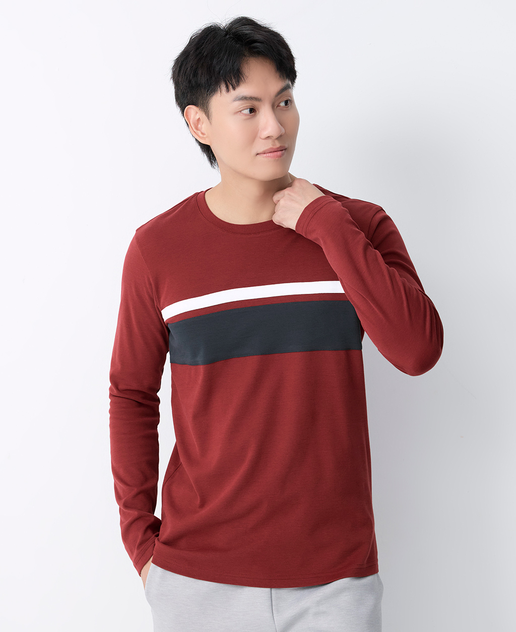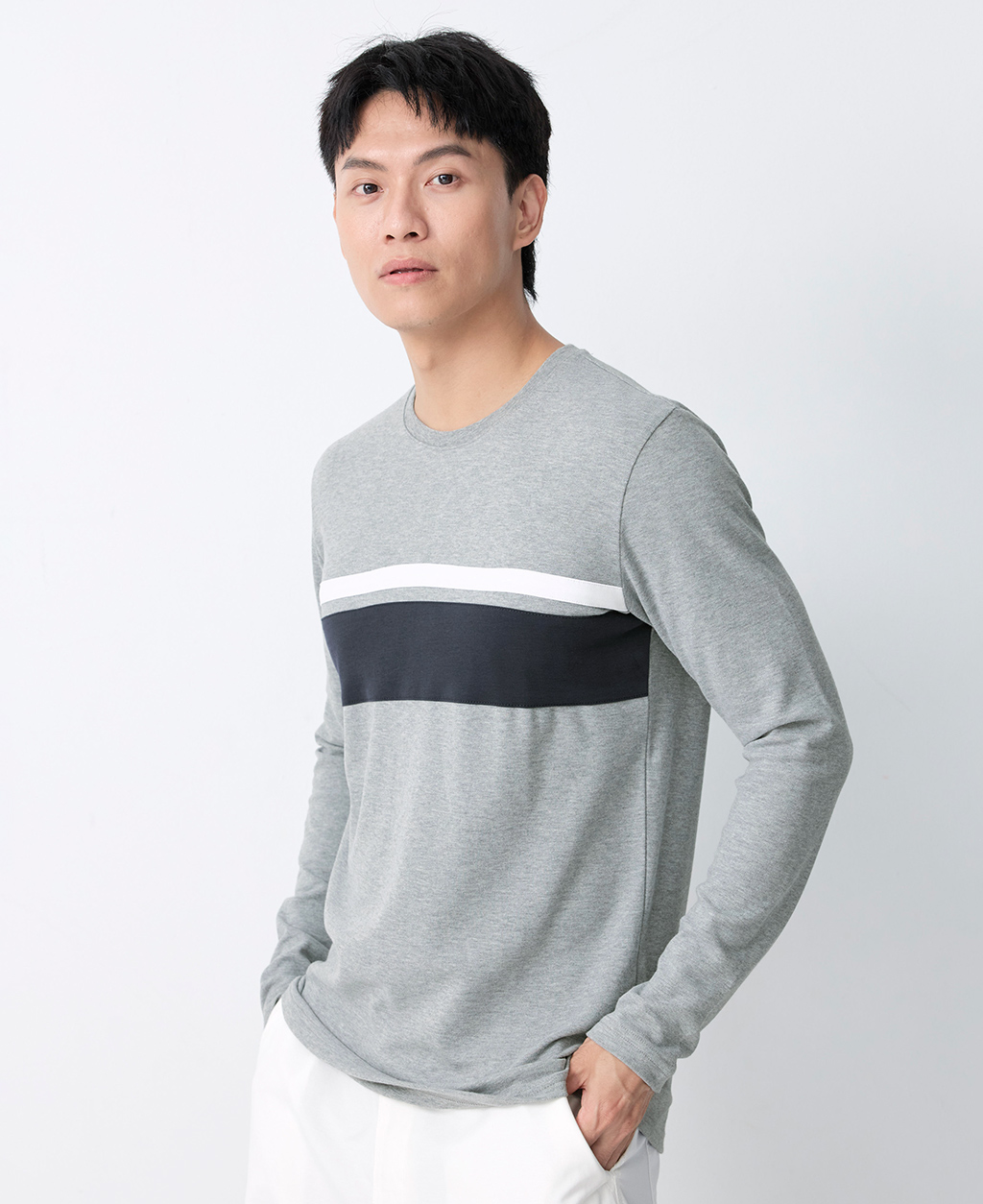 吸濕保暖條紋圓領T恤
