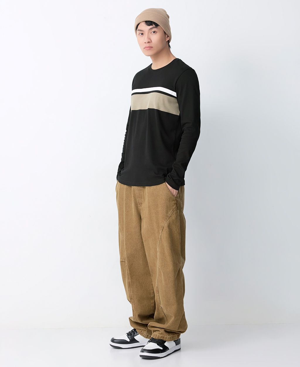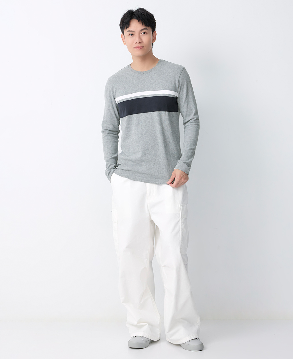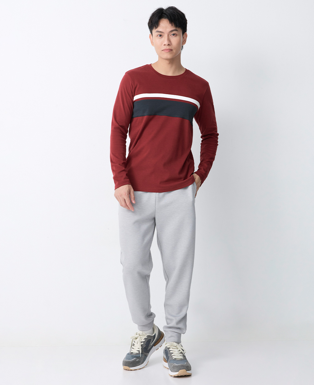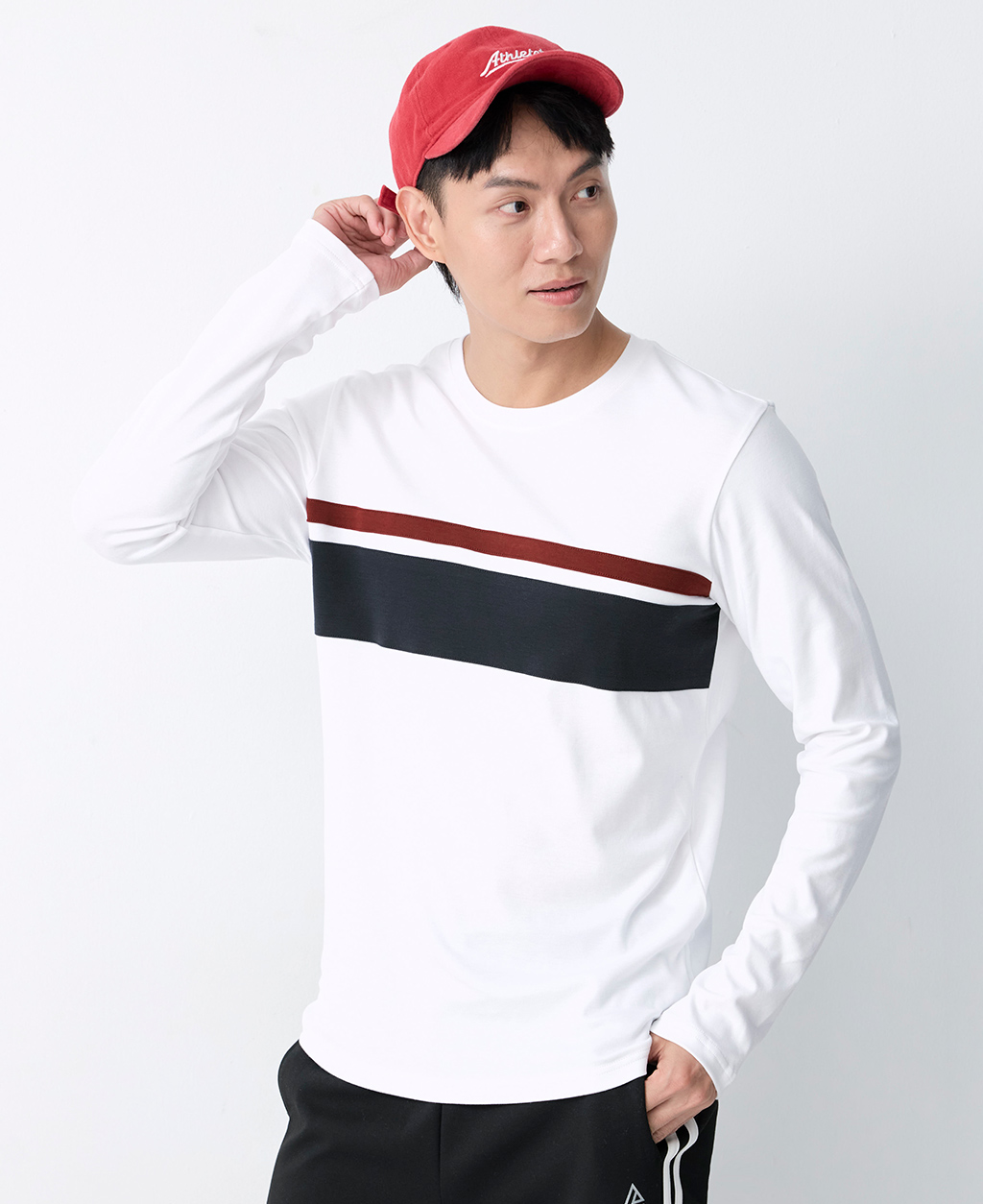 吸濕保暖條紋圓領T恤