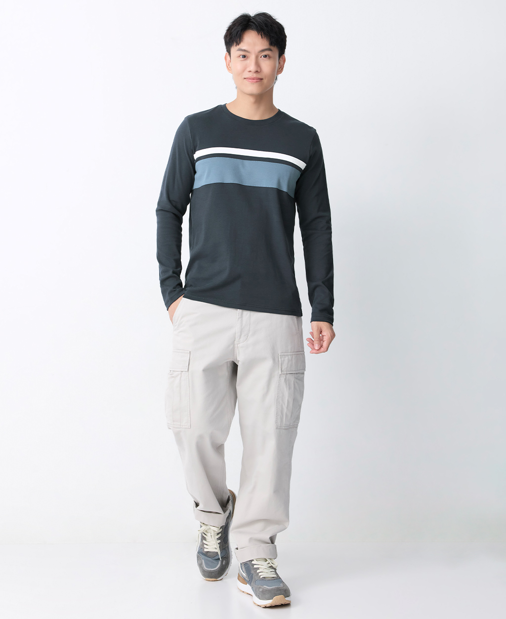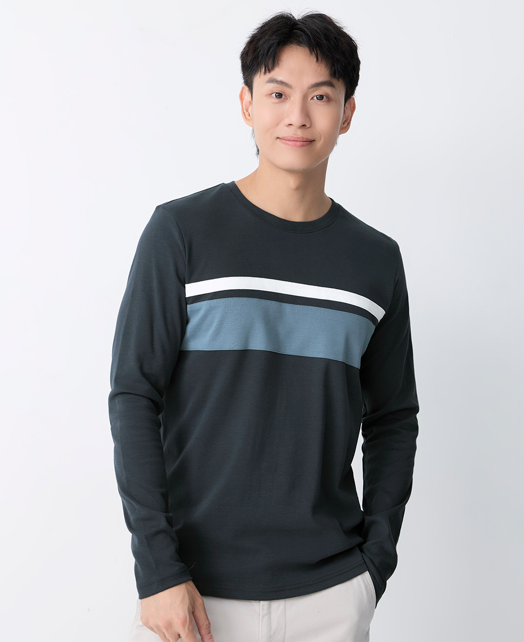 吸濕保暖條紋圓領T恤