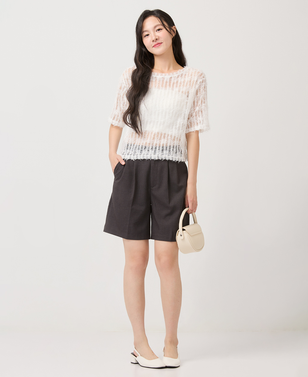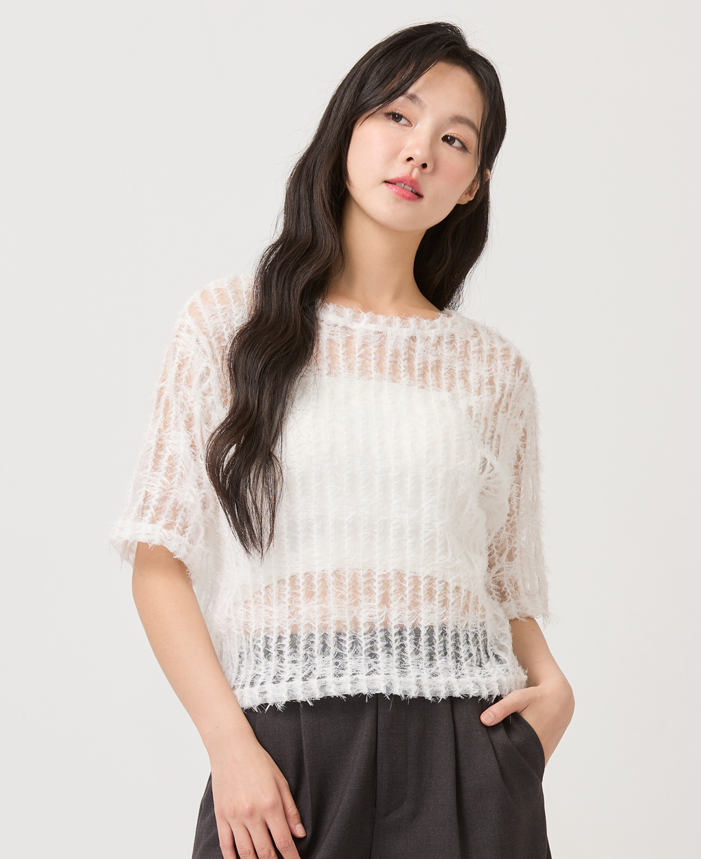 1.此商品因面料編織特性上的原因,紗支精密細緻,纖維如被指甲或突起物、飾物及包類上的金屬部分等勾拉,可能會產生抽紗破洞的現象,穿著保管時請注意。