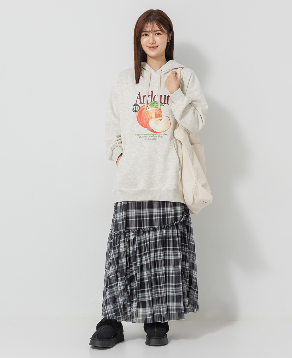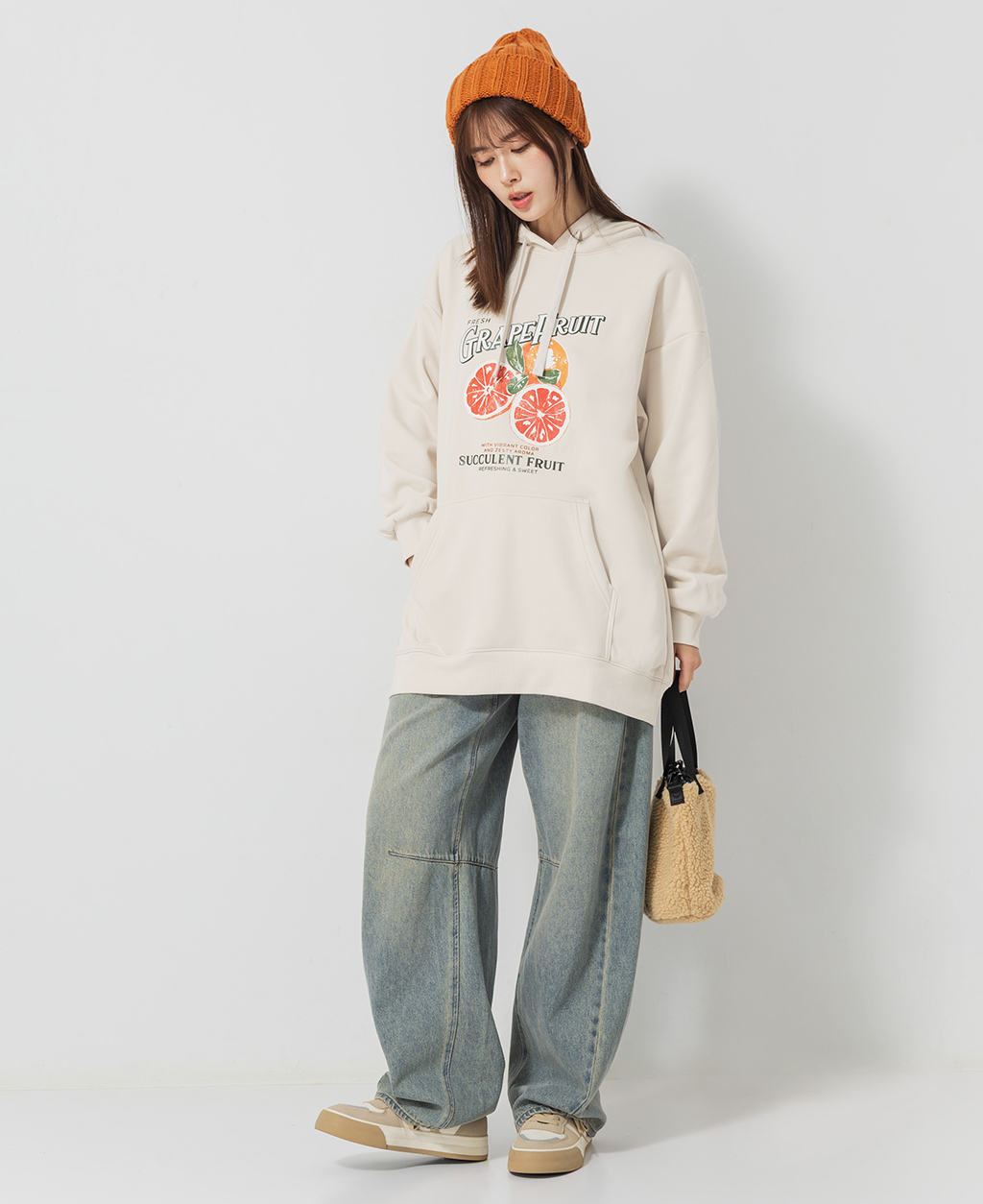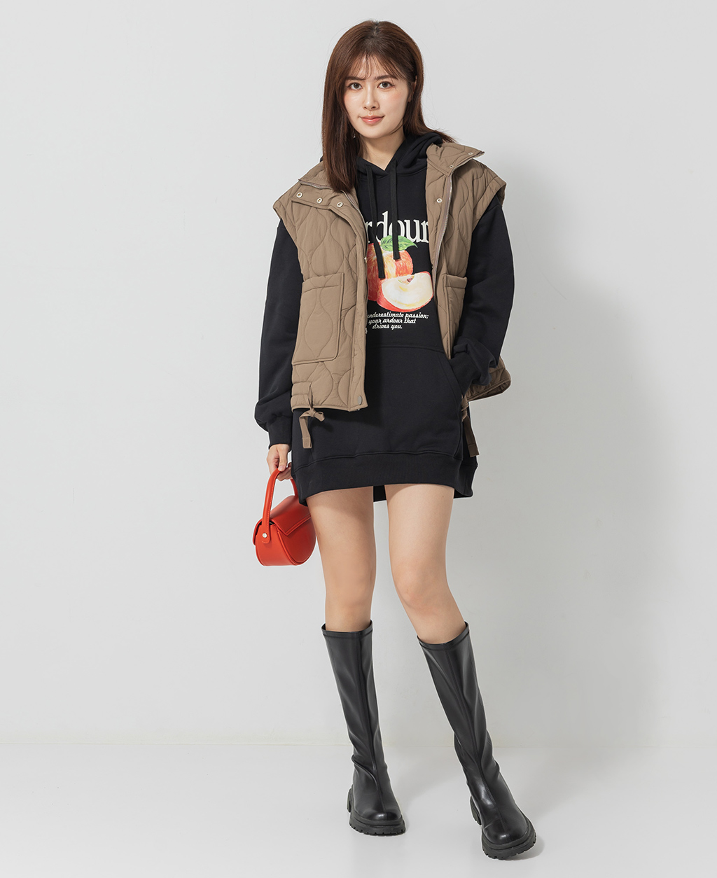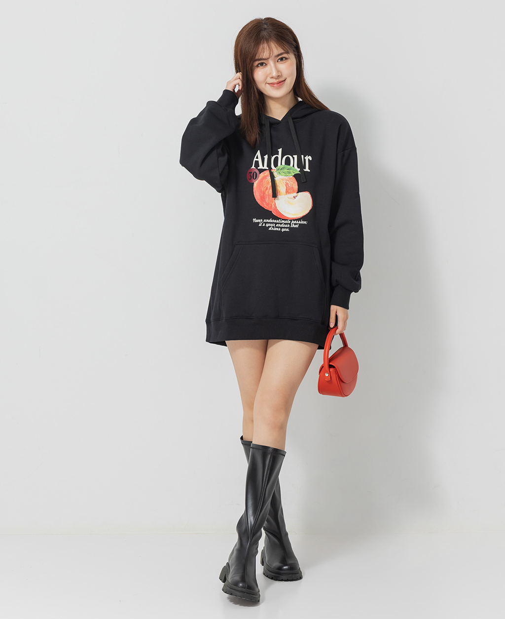 水果直筒刷毛連帽洋裝