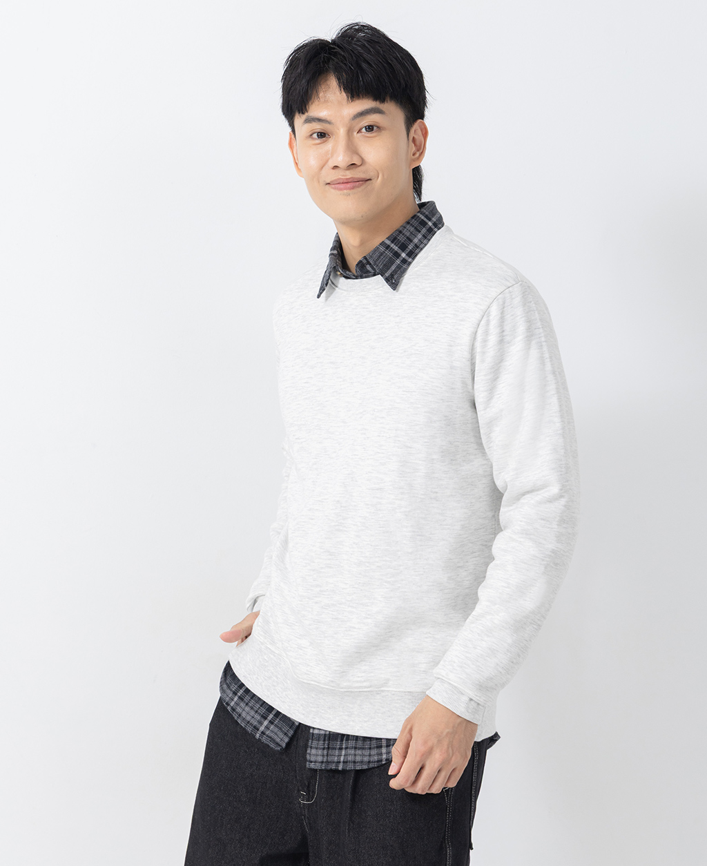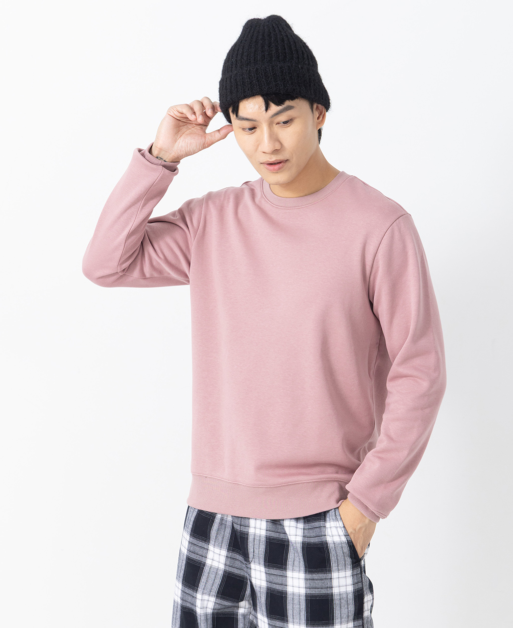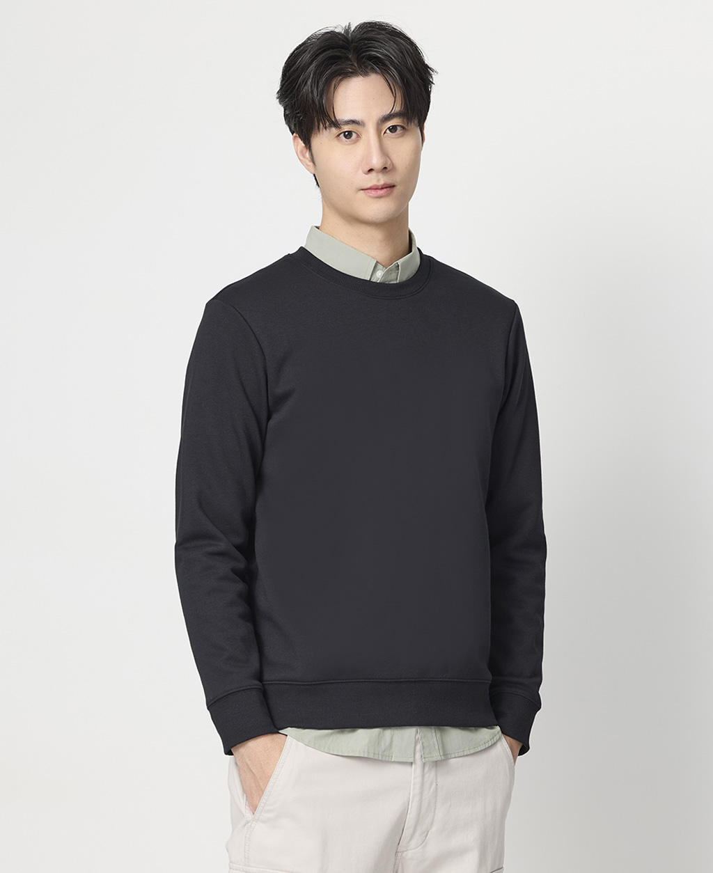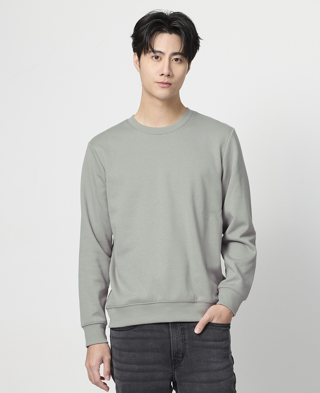 基本素色圓領刷毛大學T