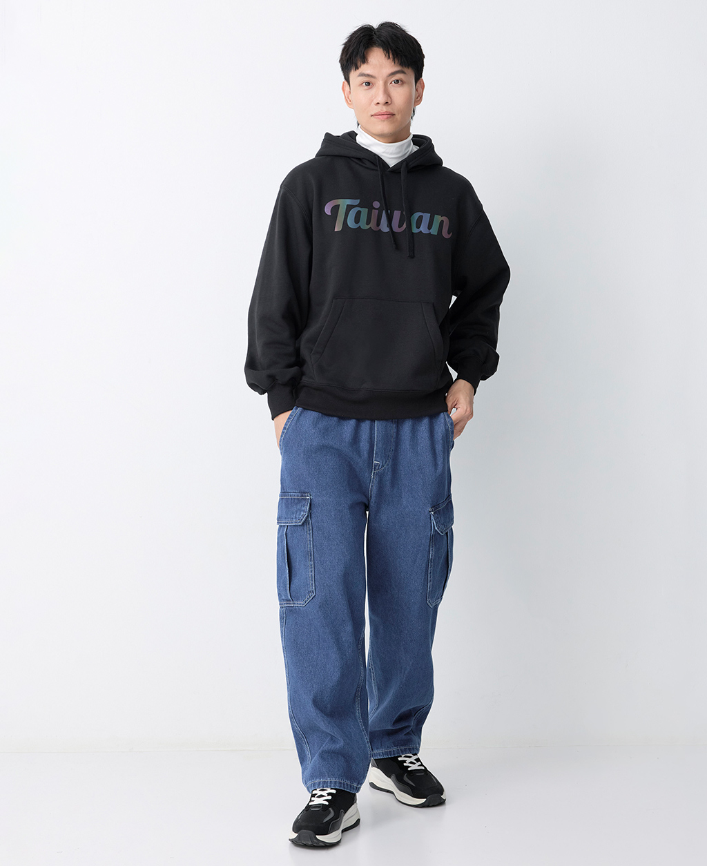 TAIWAN台灣虹膜落肩刷毛帽T