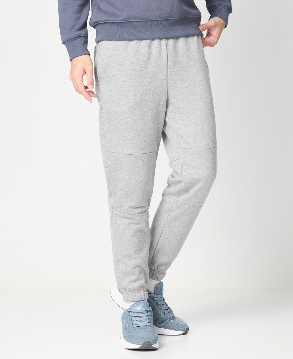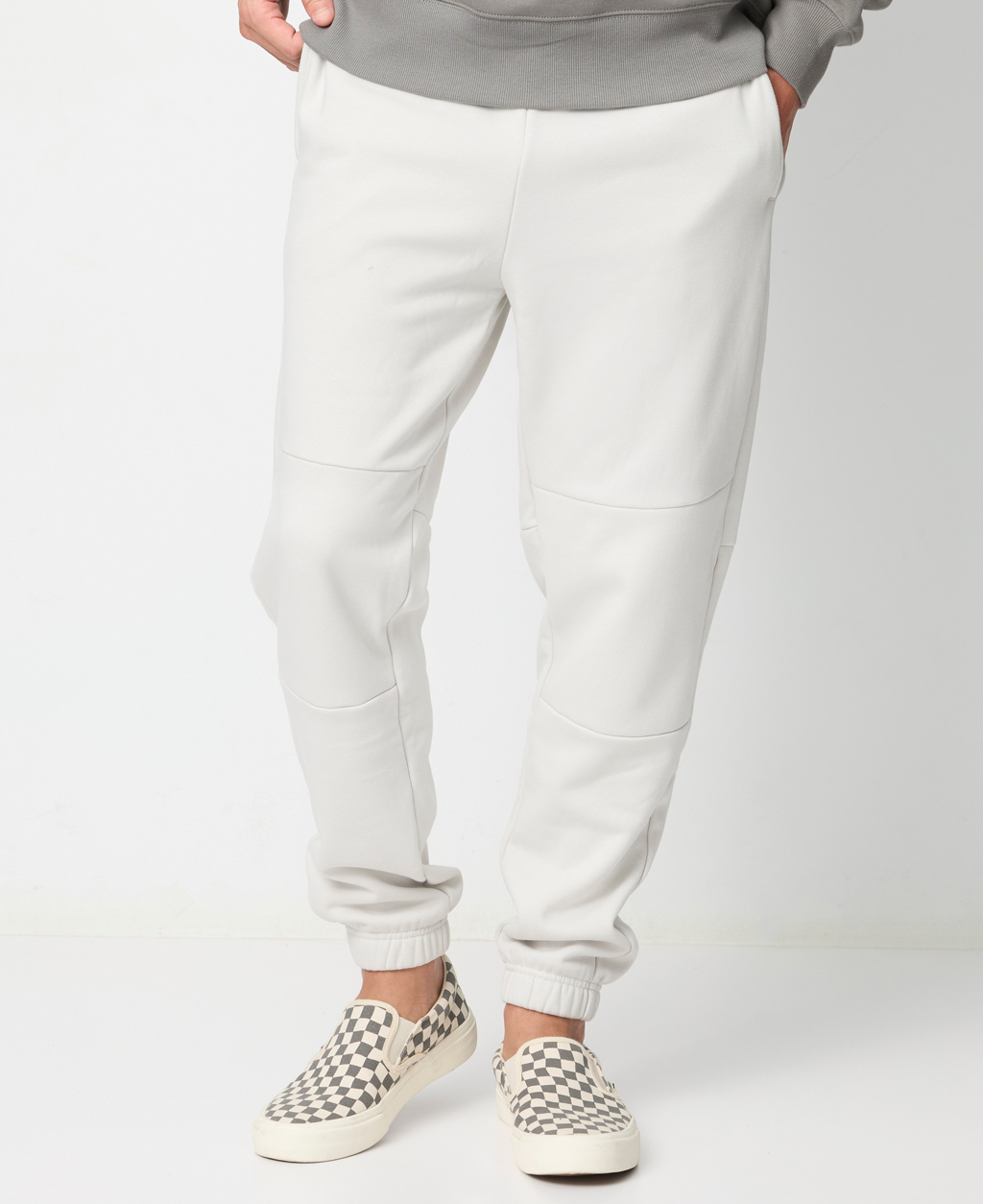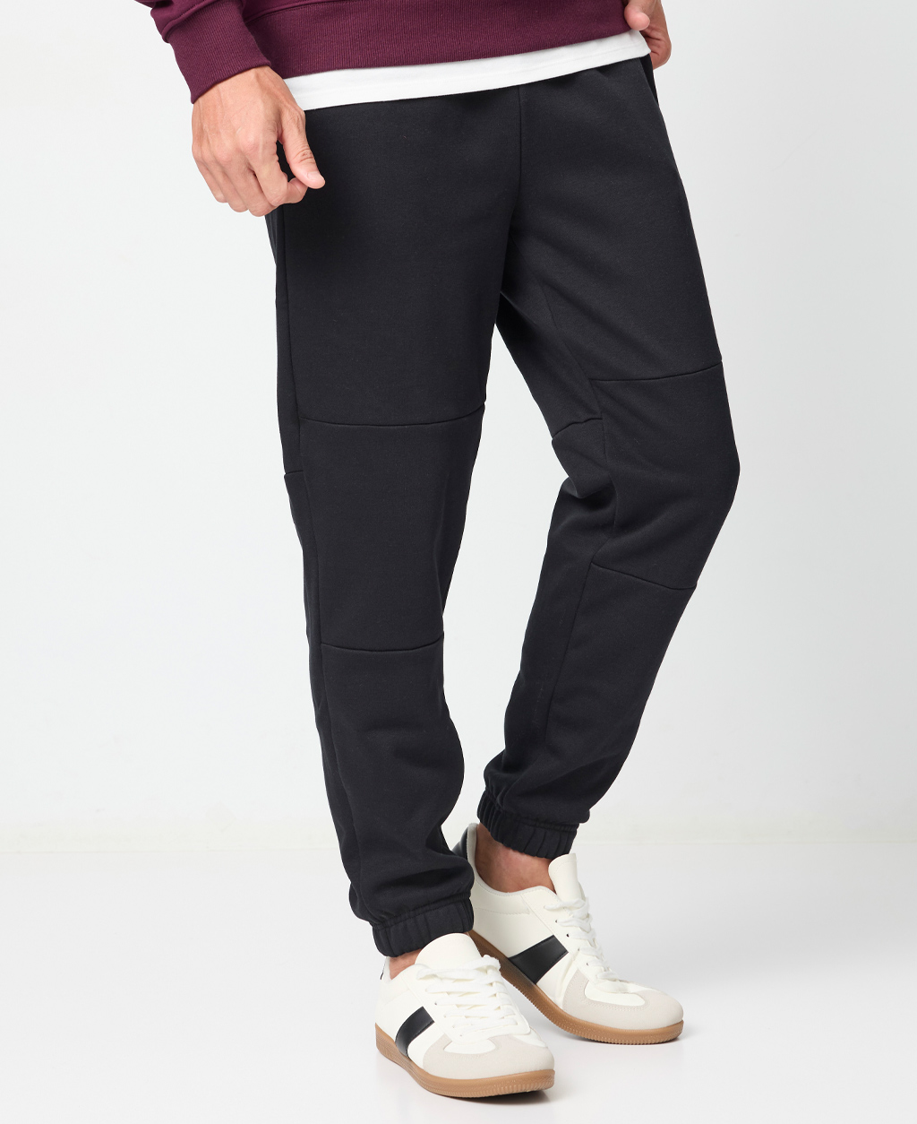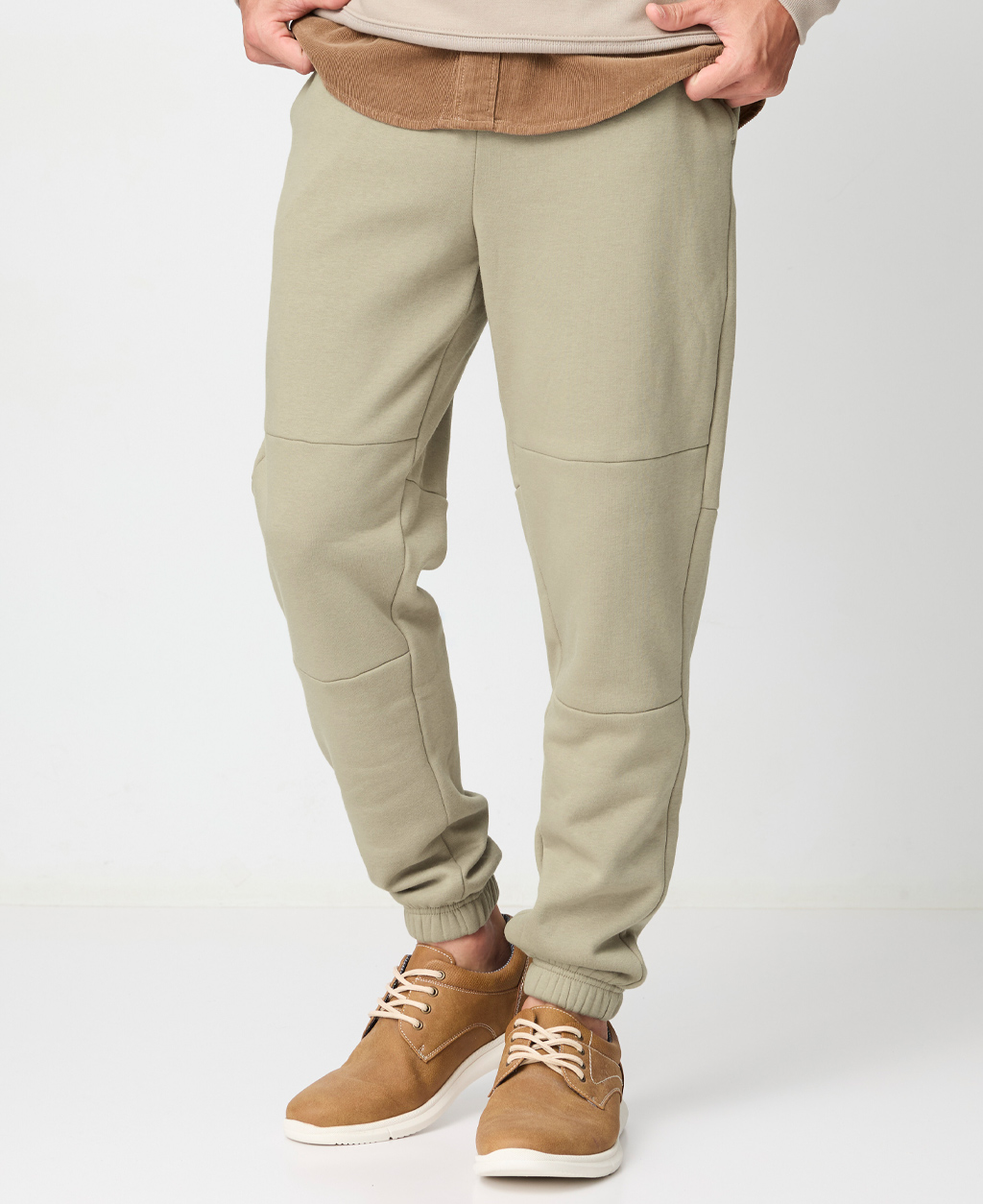 膝剪接縮口長褲