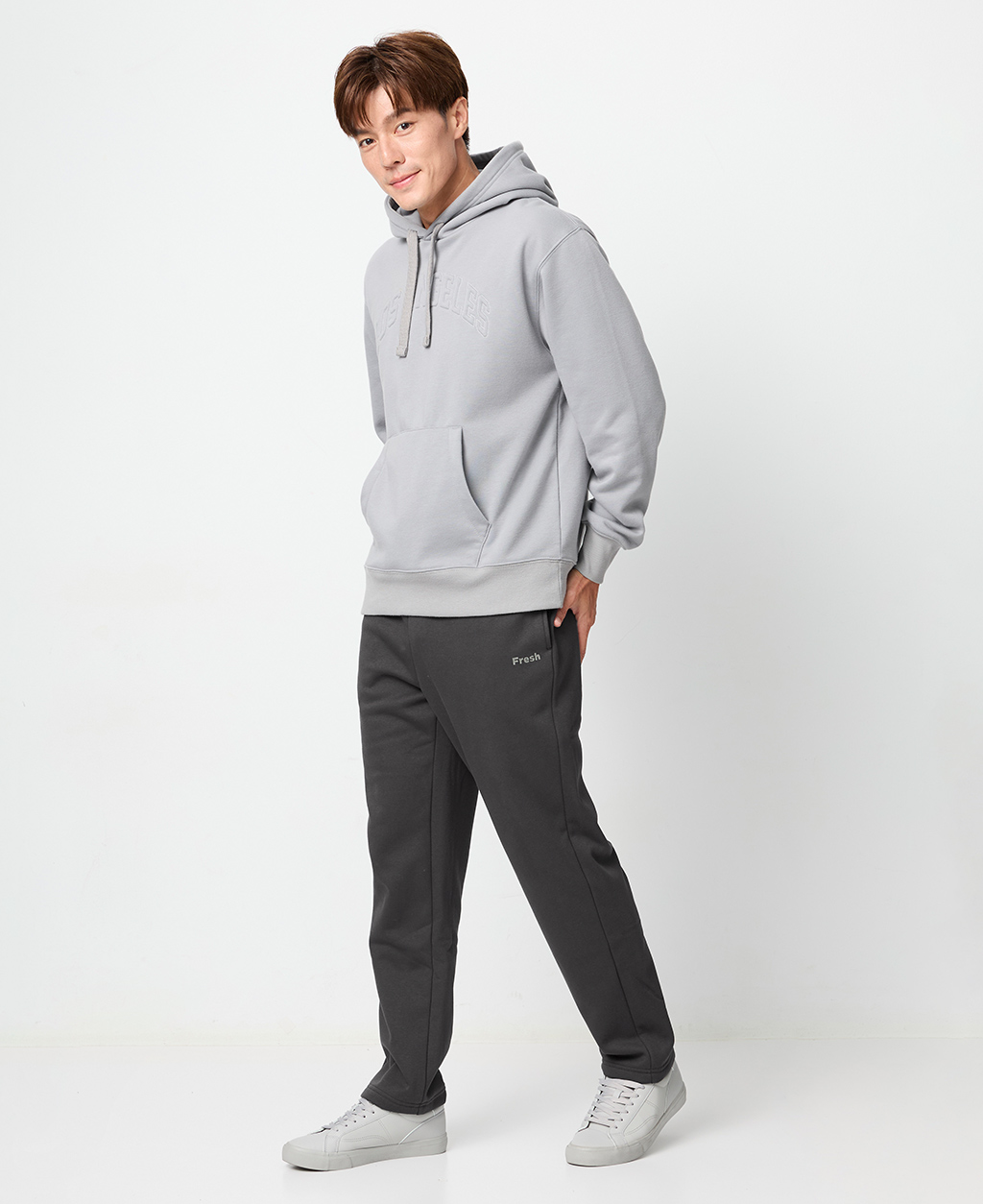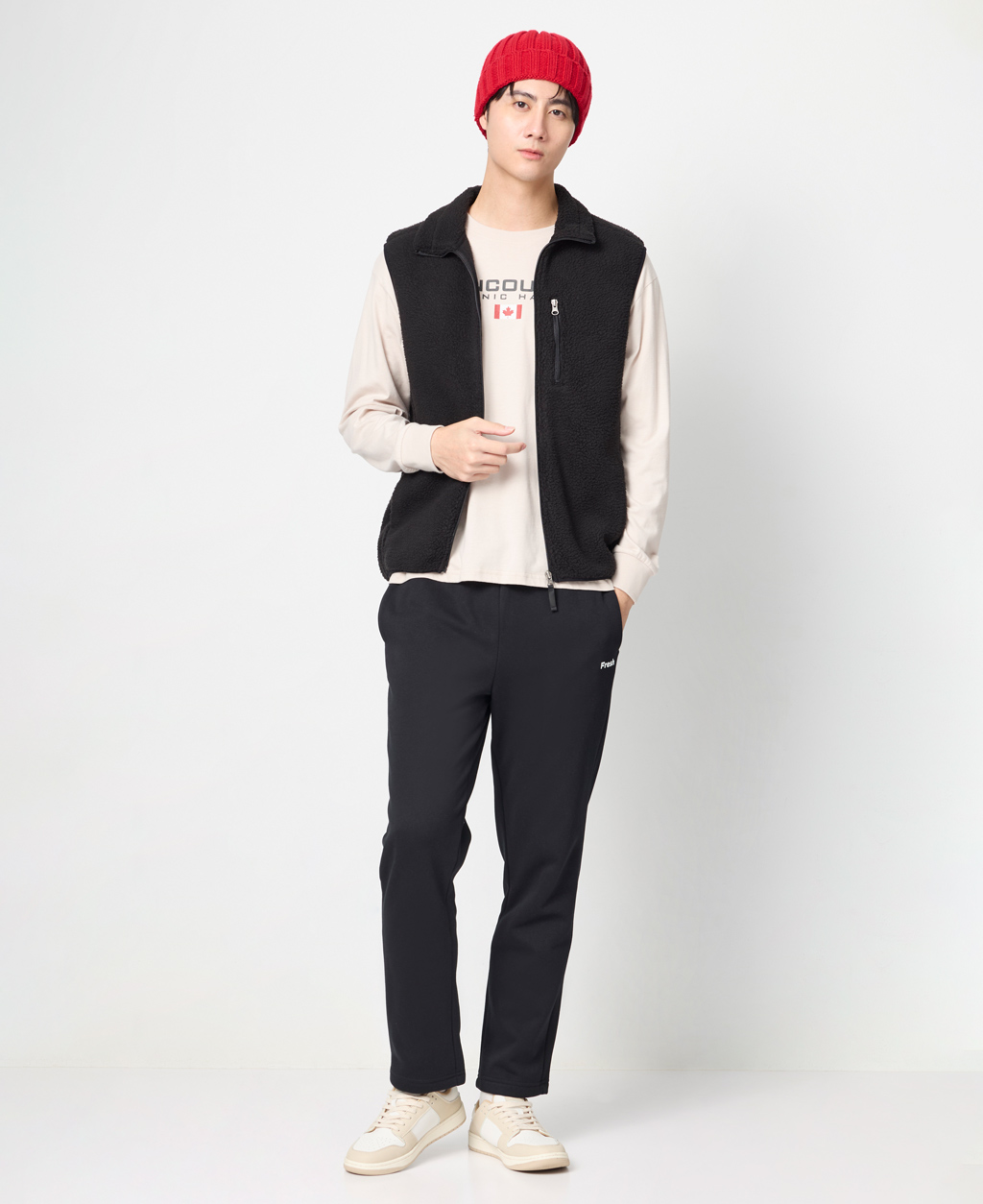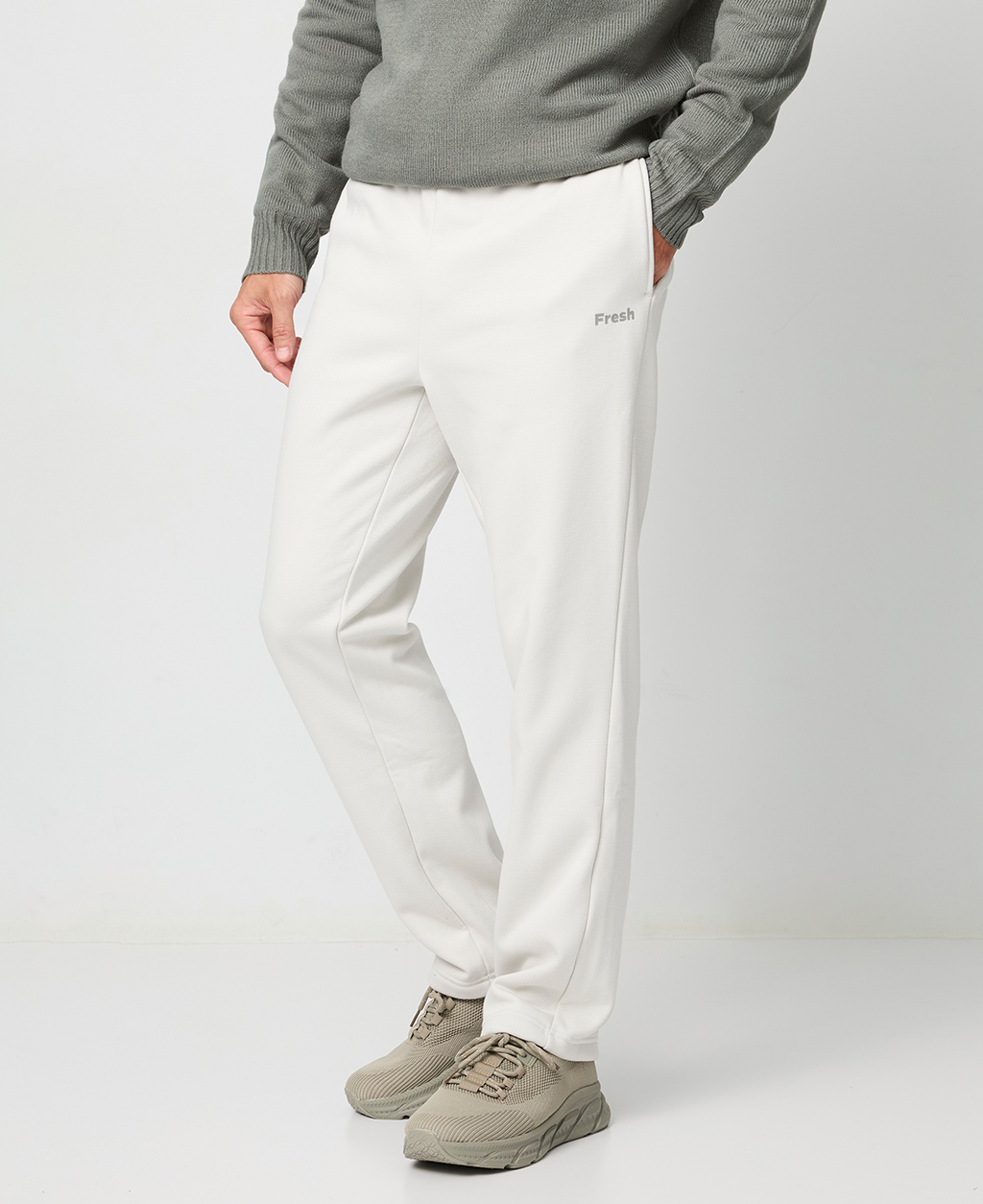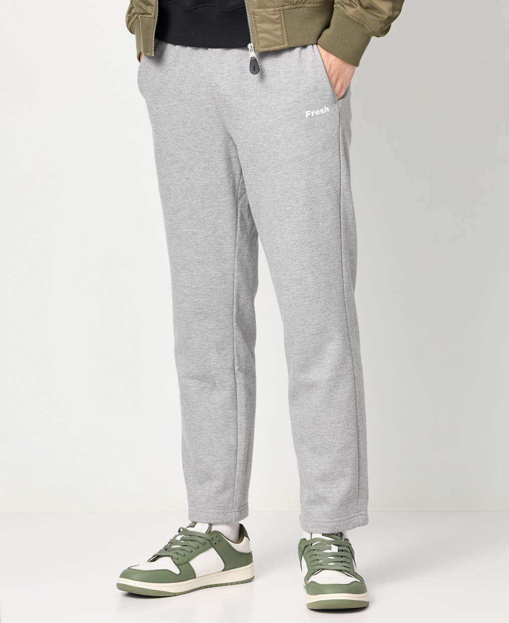 印字鬆緊腰刷毛棉褲