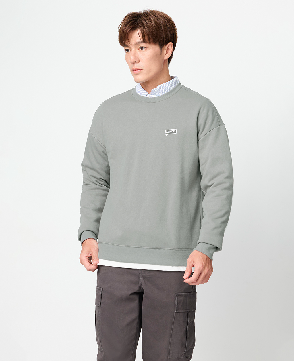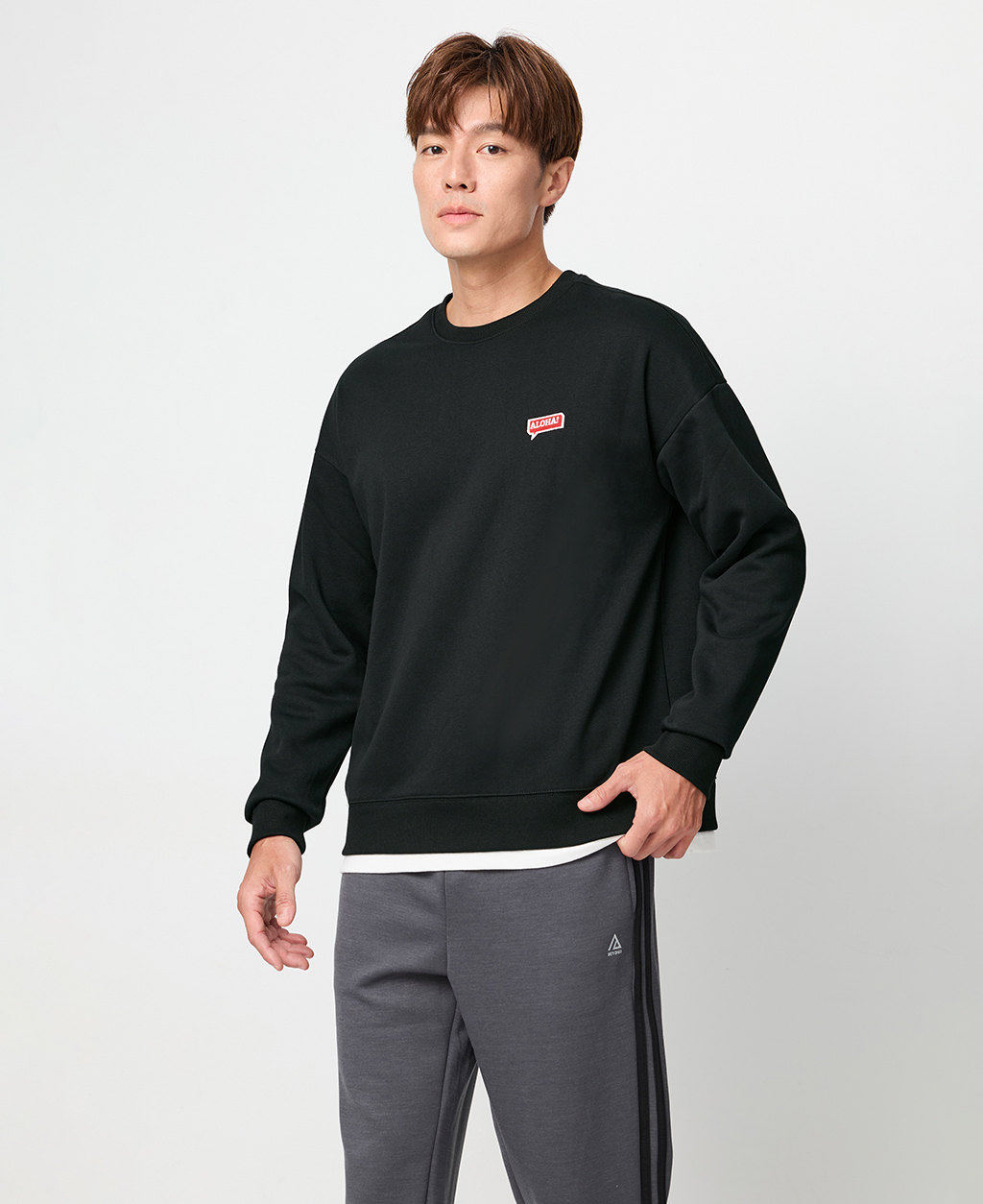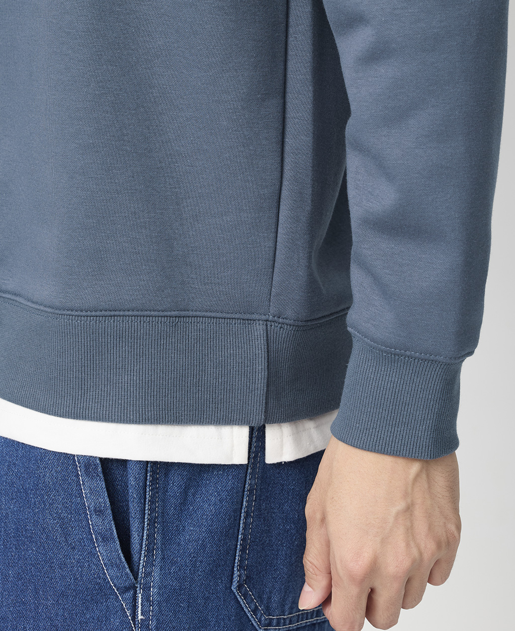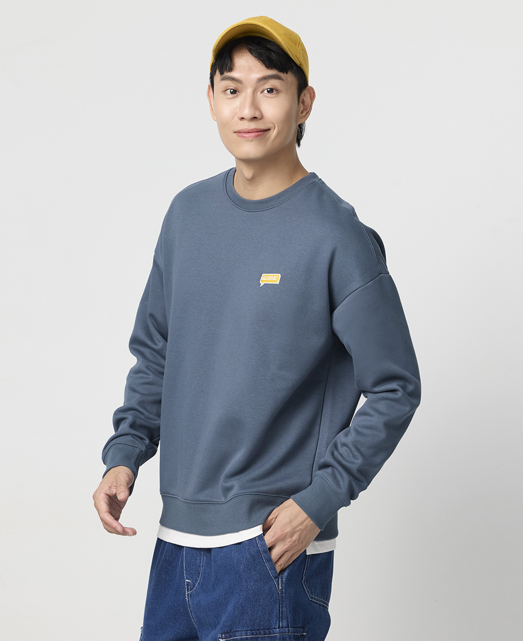 落肩下擺剪接刷毛大學T